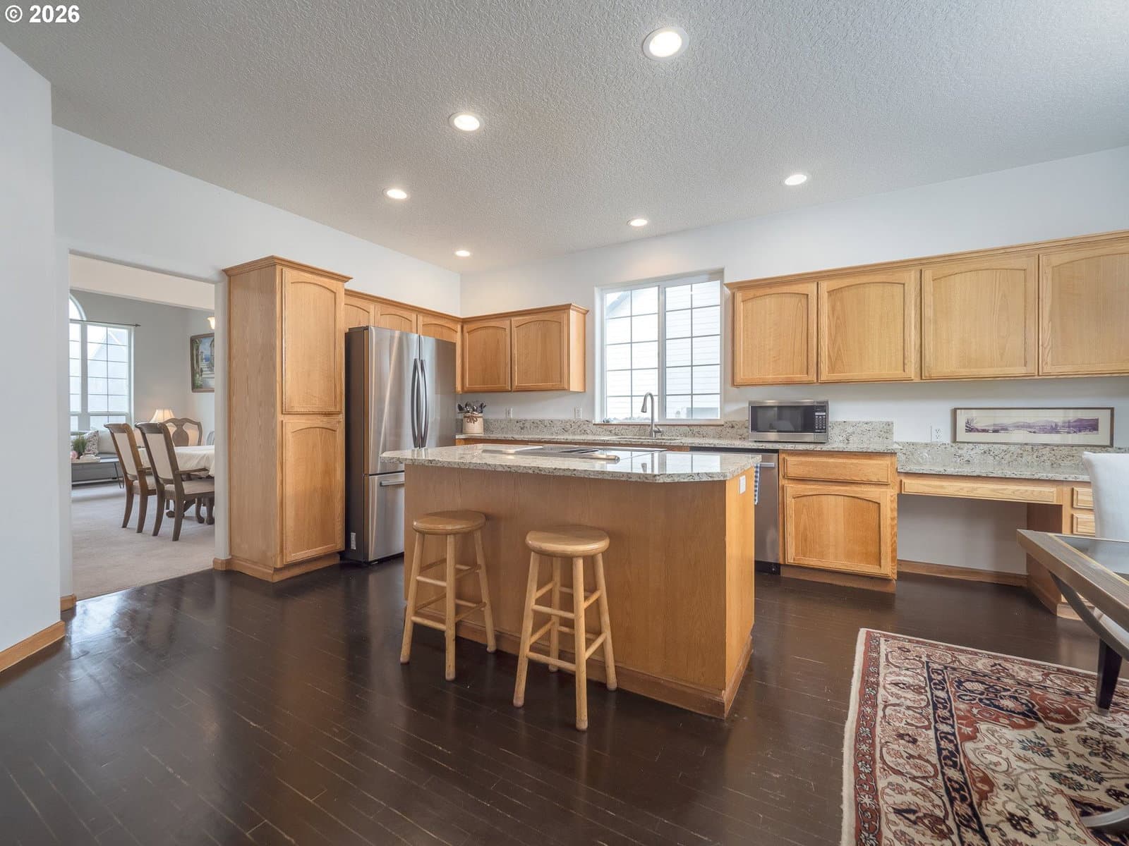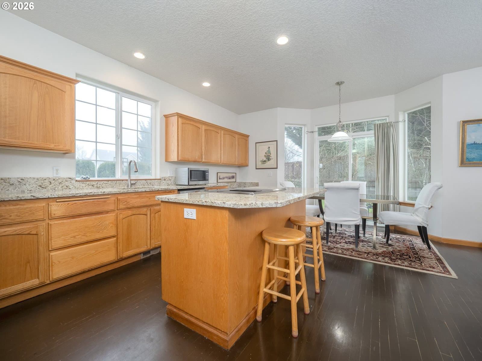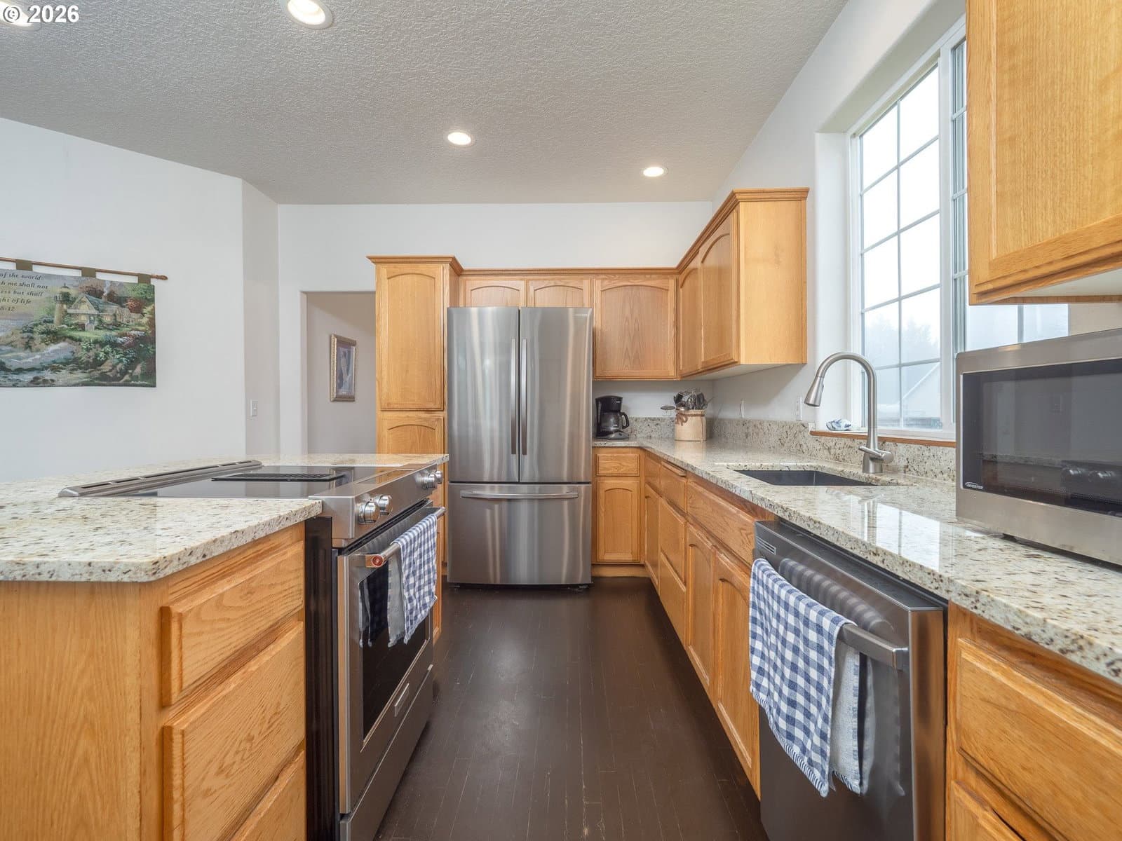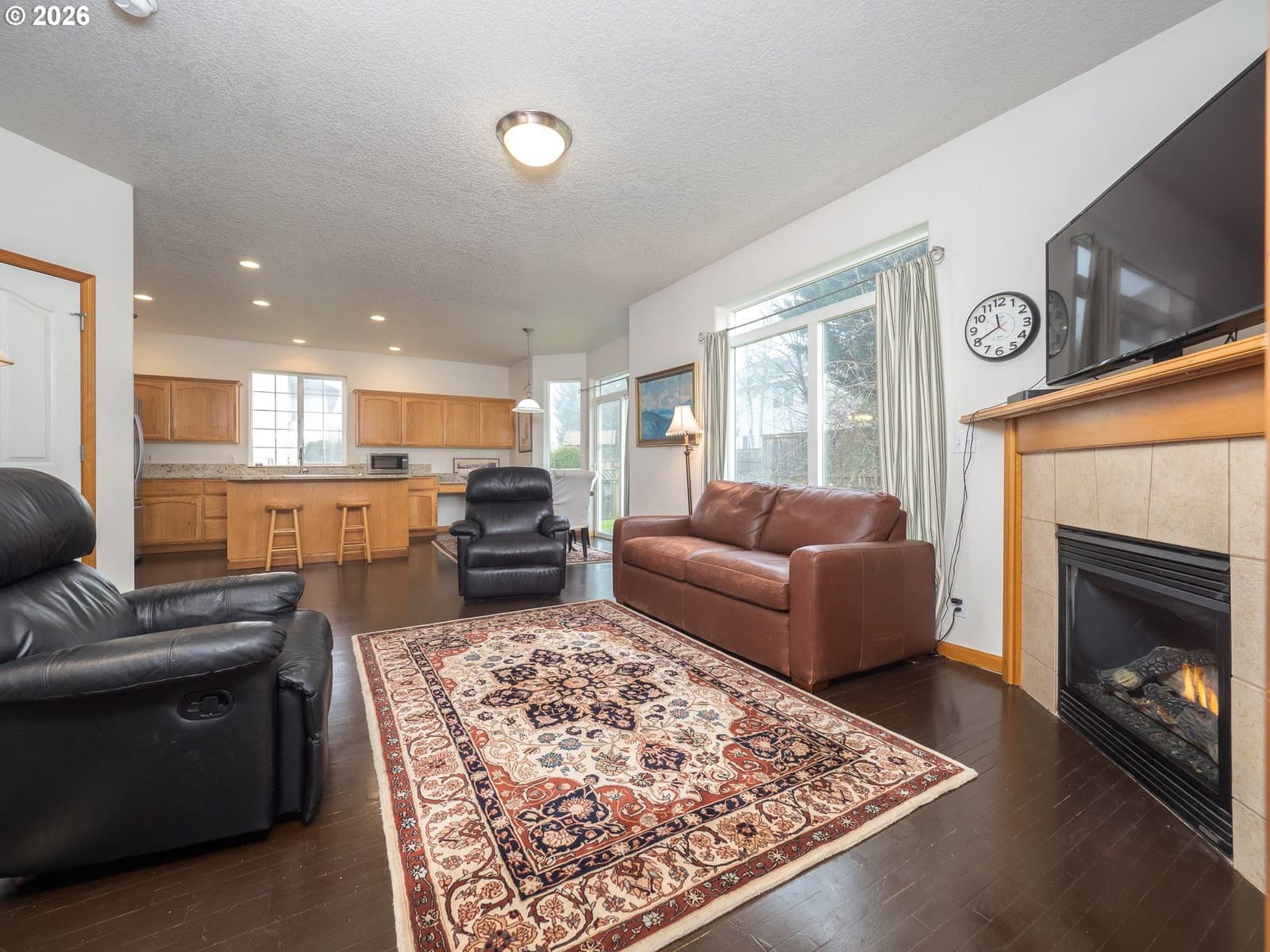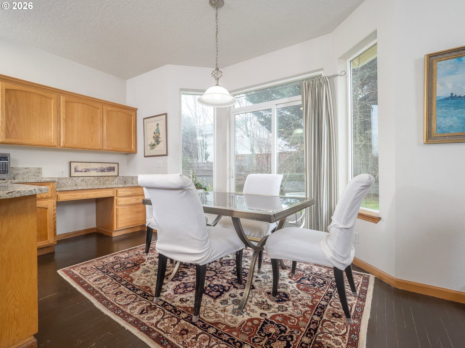 Light filled, functional, and full of charm, this home checks all the boxes. From the moment you arrive, the curb appeal shines, complete with RV parking behind a wide swinging gate and a brand new roof that adds peace of mind. Step inside to a bright front living room with vaulted ceilings and a dramatic picture window that floods the space with natural light. The heart of the home features a beautifully updated kitchen with new granite countertops, newer stainless steel appliances, abundant cabinetry, and a generous island perfect for meal prep, homework, and gathering with friends. The kitchen flows seamlessly into the family room, where a cozy gas fireplace sets the scene for relaxed evenings. A sunny breakfast nook opens through sliding doors to the patio and fenced backyard, complete with raised garden beds, ideal for summer dinners and weekend projects. A main level 4th bedroom offers flexibility as a home office, playroom, or guest retreat. Upstairs, you will find three additional bedrooms, a convenient laundry room, and a primary suite with a walk-in-closet, dual sink vanity, a walk in shower, soaking tub, and peaceful views of Chehalem Mountain. All of this in a desirable neighborhood near Tom Gail Park. This is the kind of home that feels good the moment you walk in. Call today to schedule your private showing.
