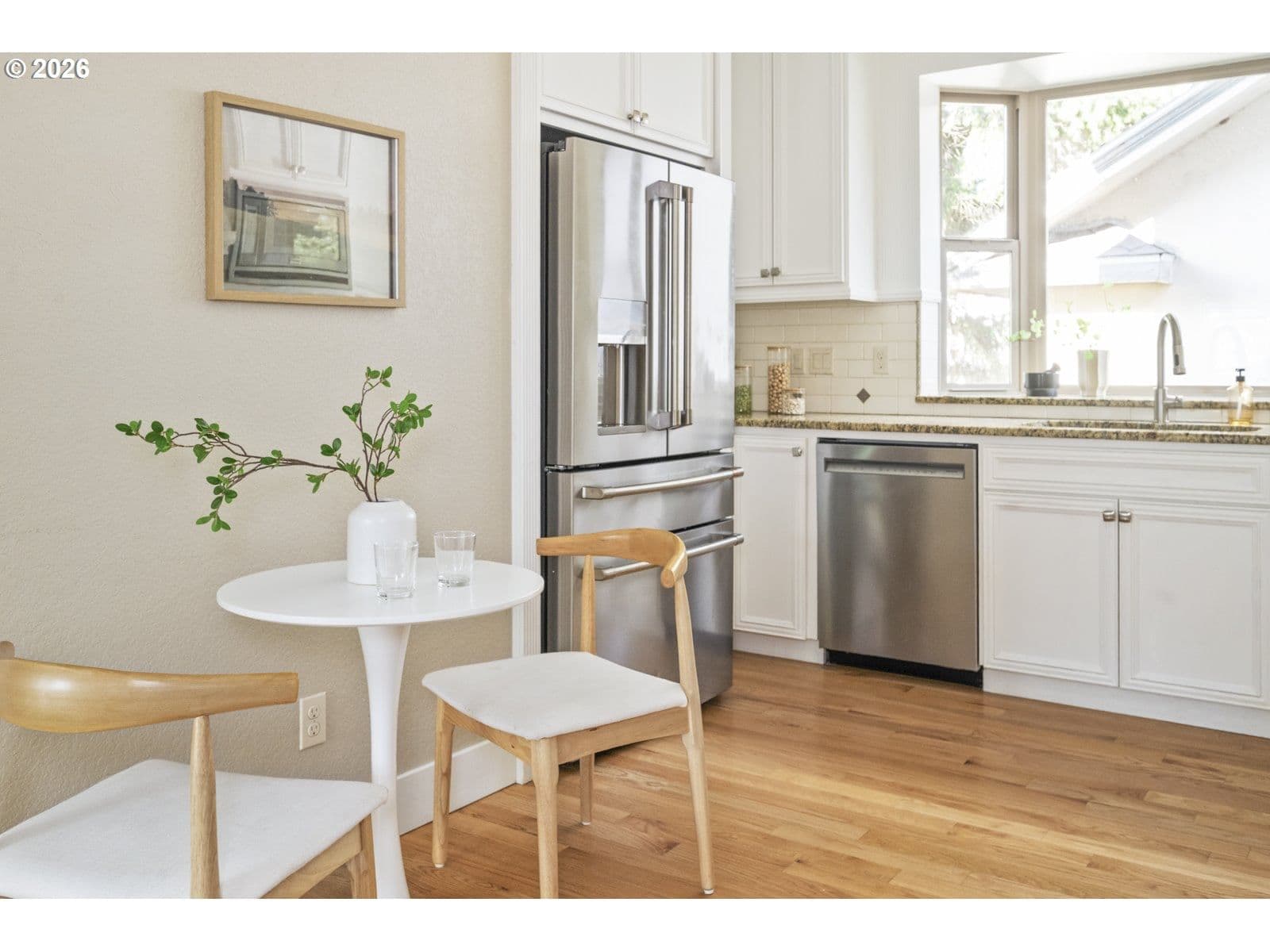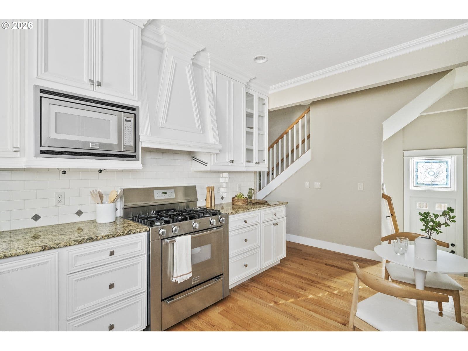 Beautifully updated custom-built home just blocks from the Alberta Arts District. From the spacious front porch to the detailed trim work throughout, this Craftsman-inspired home blends timeless character with thoughtful design. The living room features beautiful box molding on the soaring 10-foot ceilings, gleaming hardwood floors and a gorgeous gas fireplace. The chef’s kitchen features granite countertops, custom cabinets and high-end stainless steel appliances. The vaulted ceilings in the upstairs bedrooms feel big and bright and the ensuite primary bedroom is a private sanctuary. Low-maintenance yard just three blocks from the playground and fields at MLK Jr. School. A few of the many updates include bathroom remodels by Neil Kelly, hardwood floors added on the second level, all new light fixtures and sconces (including many from Rejuvenation). Ideally located just blocks from the King Farmers Market, Alberta St, the Williams Corridor and Mississippi Avenue, this home offers unbeatable access to some of Portland’s most vibrant neighborhoods. [Home Energy Score = 9. HES Report at https://rpt.greenbuildingregistry.com/hes/OR10012073]