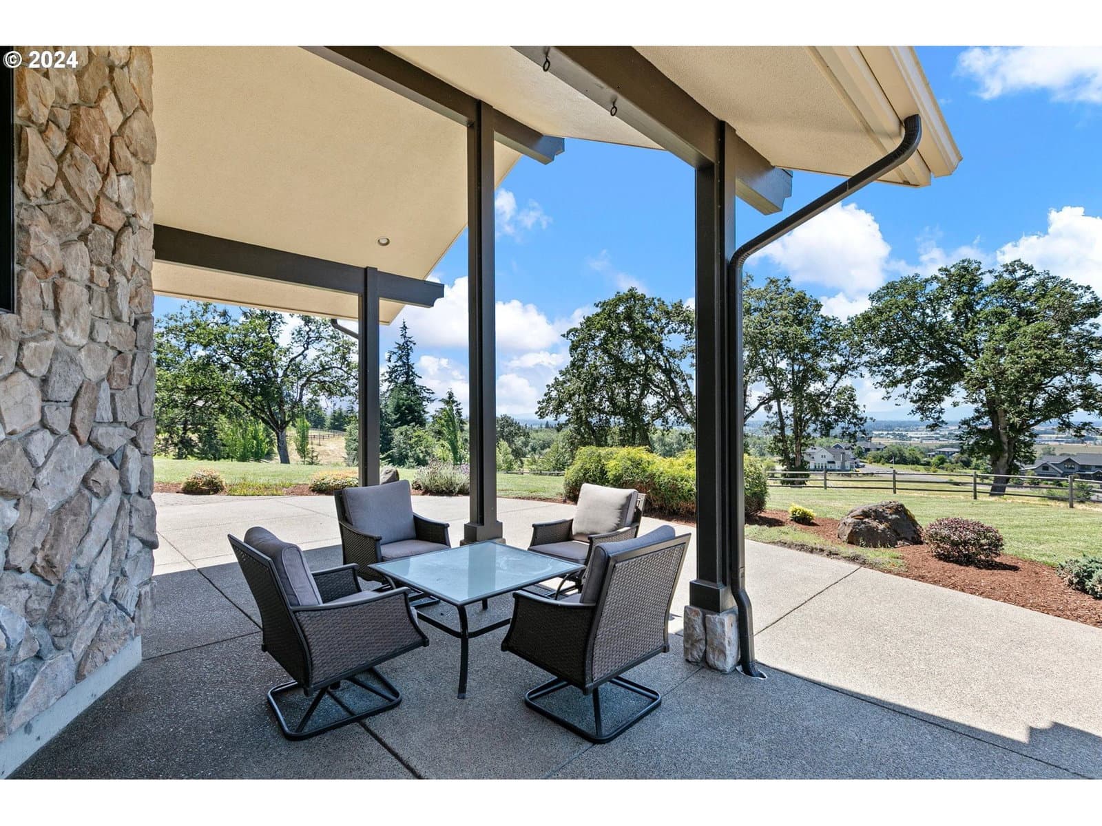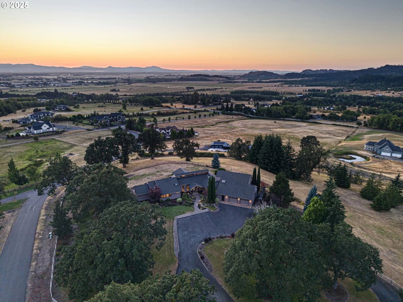 Proudly presenting for the first time on market, tucked away sits this exceptional property on a one of a kind lot. One owner has taken unprecedented care of the home & the green sprawling grounds. There's not a place on the property that doesn't dazzle w/ unparalleled views of the Coburg Hills & the valley. With over 11+ acres of greenery & gentle sloping hills, unwind & call this your forever sanctuary where the deer & wildlife roam freely & the quiet sounds of nature make for relaxing mornings & breathtaking sunset filled evenings. Inside you are greeted by an enticing tile entryway & soaring vaulted ceilings, complimented with an abundance of natural light. Large living area w/ stone gas fireplace & beautiful built-ins. Dining room area extends to kitchen showcasing alluring architecture throughout with quarter sawn oak cabinetry, granite countertops, walk-in pantry, spacious eating bar, new cooktop, newer Bosch dishwasher, & a separate bar sink complete with built in wine storage. 3 bedrooms on the main floor including the Primary Suite with huge walk-in closet, massive en-suite bathroom w/ heated floors, dual vanity & glass tile walk-in shower. Exterior entry to back patio & seating area. Multiple exterior entries throughout for easy access. Guest bathroom with sizable soaking tub & heated floors. Upstairs is a huge bonus room with ample storage & another cozy gas fireplace. Enjoy the serene surroundings under a covered patio looking out west. Newer propane firepit for year round entertainment & comfort. Bring all your toys & hobbies because in addition to extra deep 2 car garage, there is a 3 car shop! A covered barn area would be perfect for horses or other farm animals! 3 year old dual zone heat pumps makes for sensible & energy efficient cooling & heating. Schedule a private tour today to view this picturesque property that will leave you speechless!