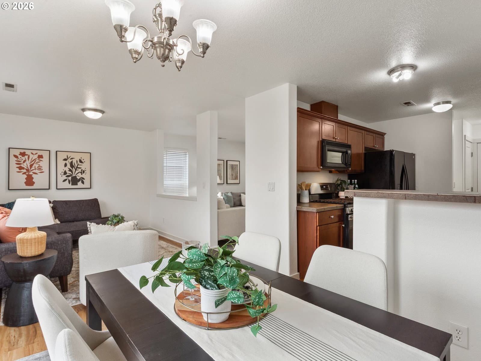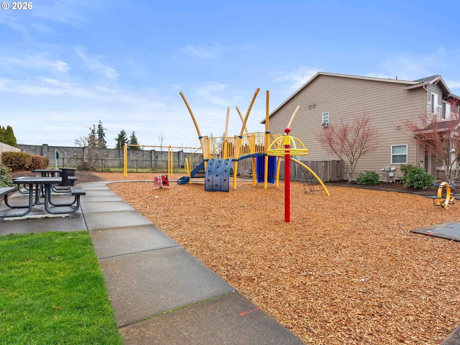 Windows everywhere bathe this warm example of modern design in glorious natural light. Just one block west to the neighborhood play-structure park and one block north to the basketball/ general use park! This meticulously maintained home boasts all new interior paint, new dining/ family room floor, 4 spacious bedrooms and 2-1/2 convenient baths, fully fenced, spacious back yard as well as a two car garage with removable shelving! The generous kitchen is a chef's dream with a dining area and slider to the back patio for indoor/ outdoor mealtime fun! Best of all this unique floorplan includes an extra den/ office space for at-home work and leisure! Enjoy, explore, taste and play in historic downtown Canby, city parks, restaurants, bakeries, coffee shops and Canby's other cultural amenities. HOA covers front yard maintenance. Small town living minutes from the big city! Clackamas County taxes. Sale is part of a 1031 exchange, no affect on buyers. INVESTORS, Clackamas Cty taxes; rental history available. Laundry in upper floor hall closet.