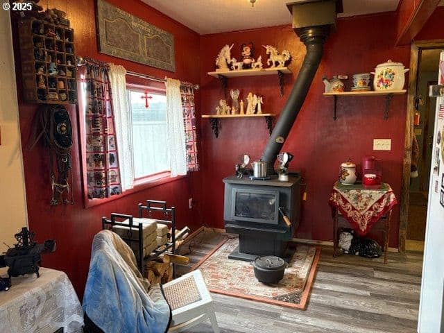 Cozy Dayville Home w/Country Charm! Located off of the south fork road and is within walking distance to the city park, great opportunity to live in a small rural community, living room features wood accents, kitchen features wood cabinets, vintage sink & dining area, 1550 sq ft, primary bedroom, guest bedroom, guest bath w/full tub/shower, large sunroom/office area, upper bonus room, large walk in pantry, laundry area, wood & oil heating, carpet & laminate flooring, covered front porch, metal roof, back patio, fenced yard, garden area, fruit trees, detached garage/workshop, on and off street parking. $221,500 #1162
