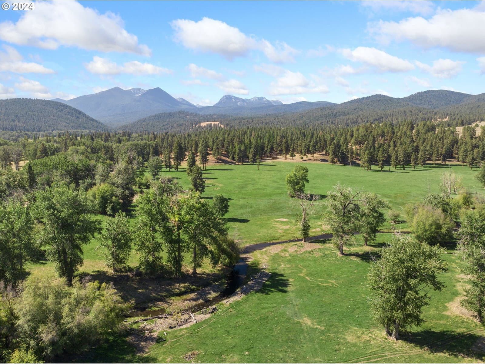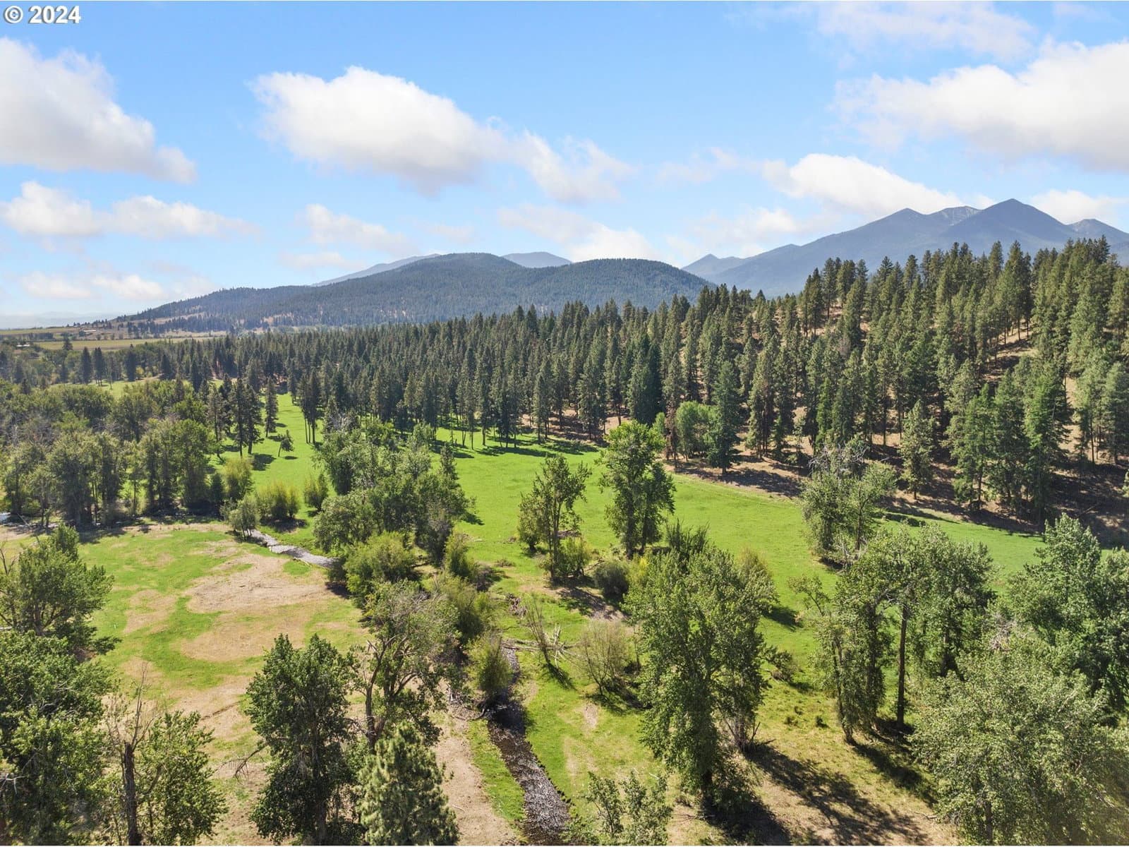 Welcome to your dream 350-acre sanctuary—a stunning custom-built home nestled in a breathtaking landscape with immaculate panoramic views. This picturesque property is truly one-of-a-kind. As you approach the home, you’ll be captivated by the scenic beauty surrounding the property, where rolling hills, timberland, & vibrant pasture provide a sense of peace & privacy. Step inside this exquisite residence, where modern design & thoughtful architecture showcase the vistas around you. The spacious interior features an open floor plan with large windows that bring natural light into the home & provide unobstructed views of the beautiful surroundings. The living room features high ceilings & a cozy fireplace, offering the perfect spot for gathering with family & friends or simply relaxing & enjoying the view. The chef-inspired kitchen is equipped with granite countertops, a gas stove, & ample storage space. It’s the ideal setting for hosting intimate dinner parties or preparing delicious family meals. From the kitchen & living area, step outside to your own private oasis, where a back deck offers the perfect vantage point to enjoy the stunning scenery. Picture yourself enjoying your morning coffee or evening meals looking over the private creeks & serene pond scattered throughout the property. Experience wildlife like never before—with an abundance of elk roaming freely among the property, 2 LOP elk hunting tags are available each year. The property boasts lush flood-irrigated grazing ground ideal for raising cattle. The unique irrigation of this property allows for grazing spring through late fall. The property also features a large shop, livestock corrals, a scale house, & a 3 bedroom/1 bath secondary residence. Conveniently located less than 30 minutes from Anthony Lakes Ski Resort, you can take in all the area has to offer no matter the season. This property is a rare find. Don’t miss the chance to call this stunning property your own! This property is a cattle owners dream. With water rights and flood irrigation that allows for grazing from early spring to late fall/winter. 350 acres of lush green grass makes for perfect grazing almost year around.