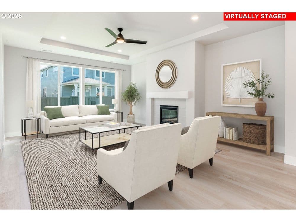 **Stunning One level** Brand new and move-in ready. This traditionally designed one-level home in South Hillsboro’s Butternut Creek built by Street of Dreams award winner, offers both comfort and convenience. With a front-facing garage and private finished backyard, it blends timeless architecture with practical living. Inside, coffered ceilings and large windows create an airy, inviting space filled with natural light. The gourmet kitchen features quartz countertops, a spacious island, and a full-height backsplash, seamlessly connecting to the great room and dining area—ideal for gatherings. Thoughtful details such as wide hallways and a walk-in pantry enhance everyday functionality, and luxury finishes are included in the price. Located in South Hillsboro’s highly sought-after Butternut Creek community, you’ll have access to nature trails, dog parks, and new amenities like Market of Choice, The Reserve golf course, and local restaurants. The home is zoned for the new Tamarack Elementary School. Whether you're commuting to Portland or planning a weekend getaway to the Oregon Coast or wine country, this location offers exceptional access to it all. Sales Center at 7372 SE Benedict St. Hillsboro, OR 97123. Home Energy Score = 10. HES Report at https://rpt.greenbuildingregistry.com/hes/OR10223091 [Home Energy Score = 10. HES Report at https://rpt.greenbuildingregistry.com/hes/OR10223091] Front landscaping included, commons and management.