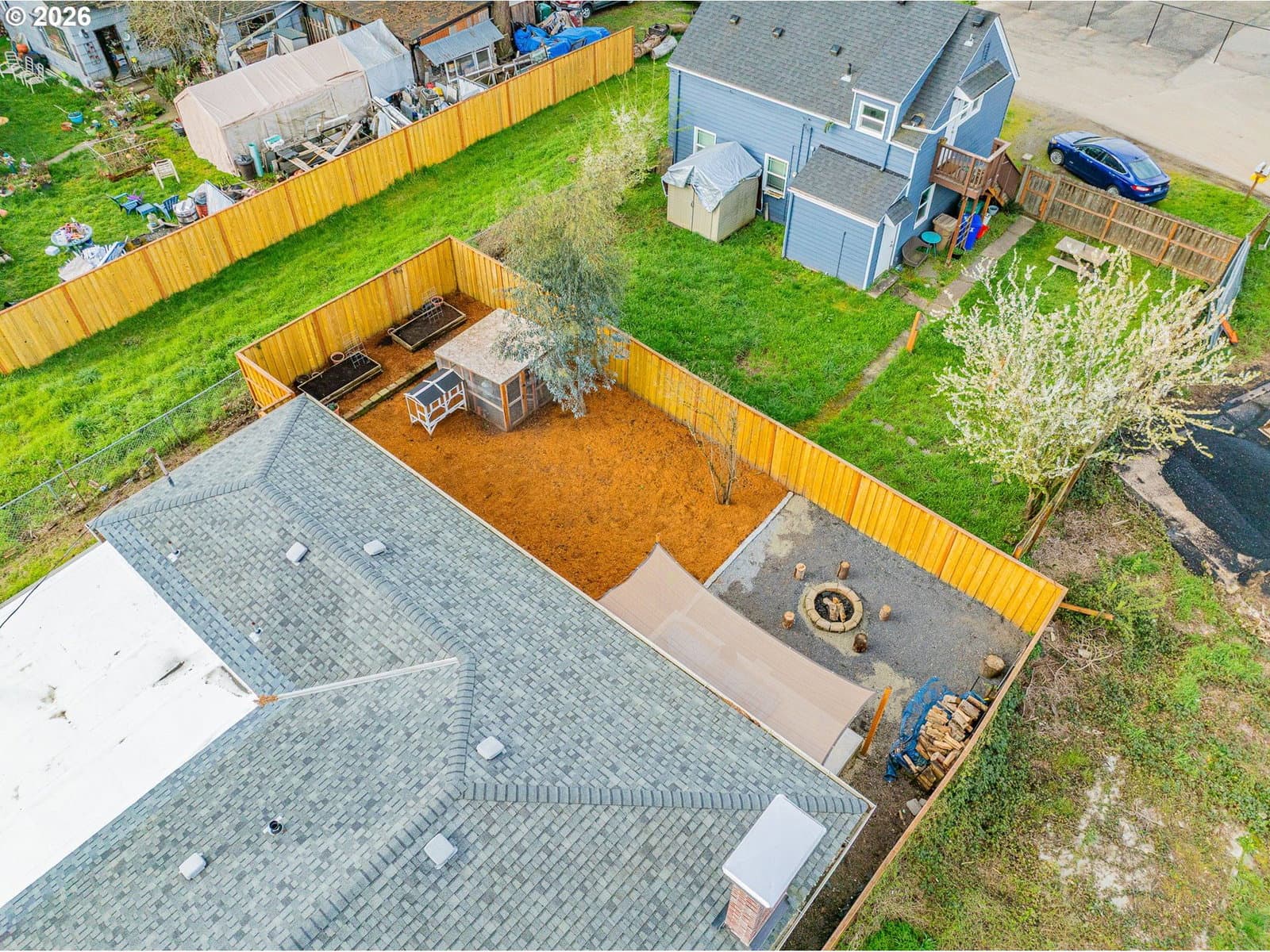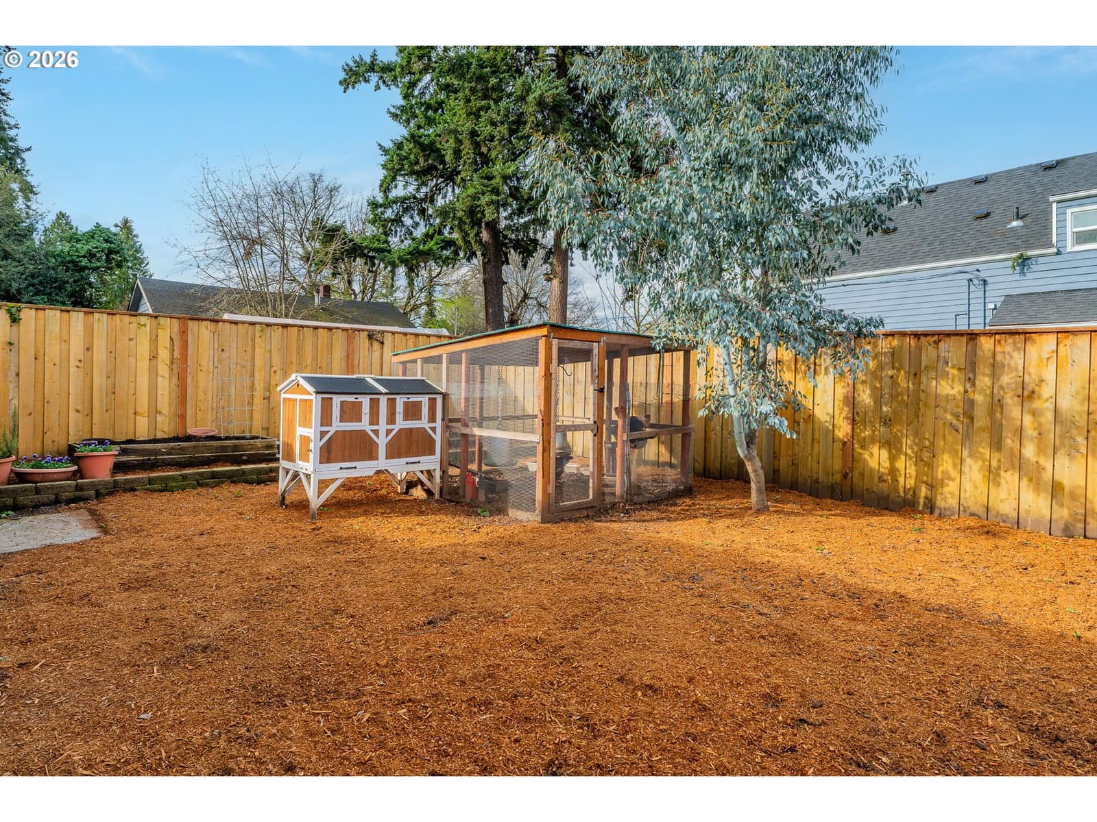 Updated Milwaukie home with new roof, major system upgrades, and a fully fenced backyard with fire pit. This 3 bed, 1 bath single-level home offers a functional layout with a light-filled living room featuring a fireplace and sliding door to the backyard patio. The kitchen includes stainless steel appliances and connects to a dedicated dining area, while the laundry/mudroom provides abundant cabinet storage and counter space. The full hallway bathroom has been updated with tile floors and a tiled shower/tub surround. Step outside to a fenced yard designed for everyday living and entertaining—complete with a fire pit, patio, raised garden beds and chicken coop, plus recent landscaping improvements including leveled yard space and garden areas. Covered entry and attached 1-car garage add convenience. Extensive updates provide peace of mind: new roof (2025), PEX-A plumbing throughout, upgraded electrical panel and added outlets, sewer line repair, newer flooring, interior trim, and multiple exterior and interior improvements. Additional updates include chimney repair with new wood-burning insert, new window, fresh paint, and more. Enjoy a move-in ready home with major systems already addressed, offering comfort, functionality, and space to live both indoors and out.