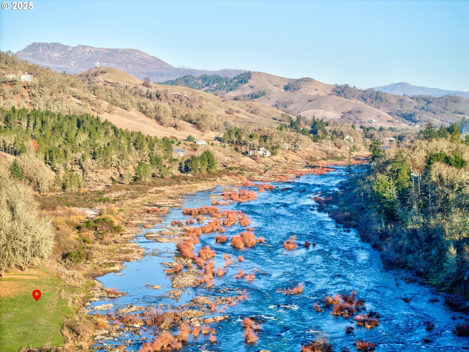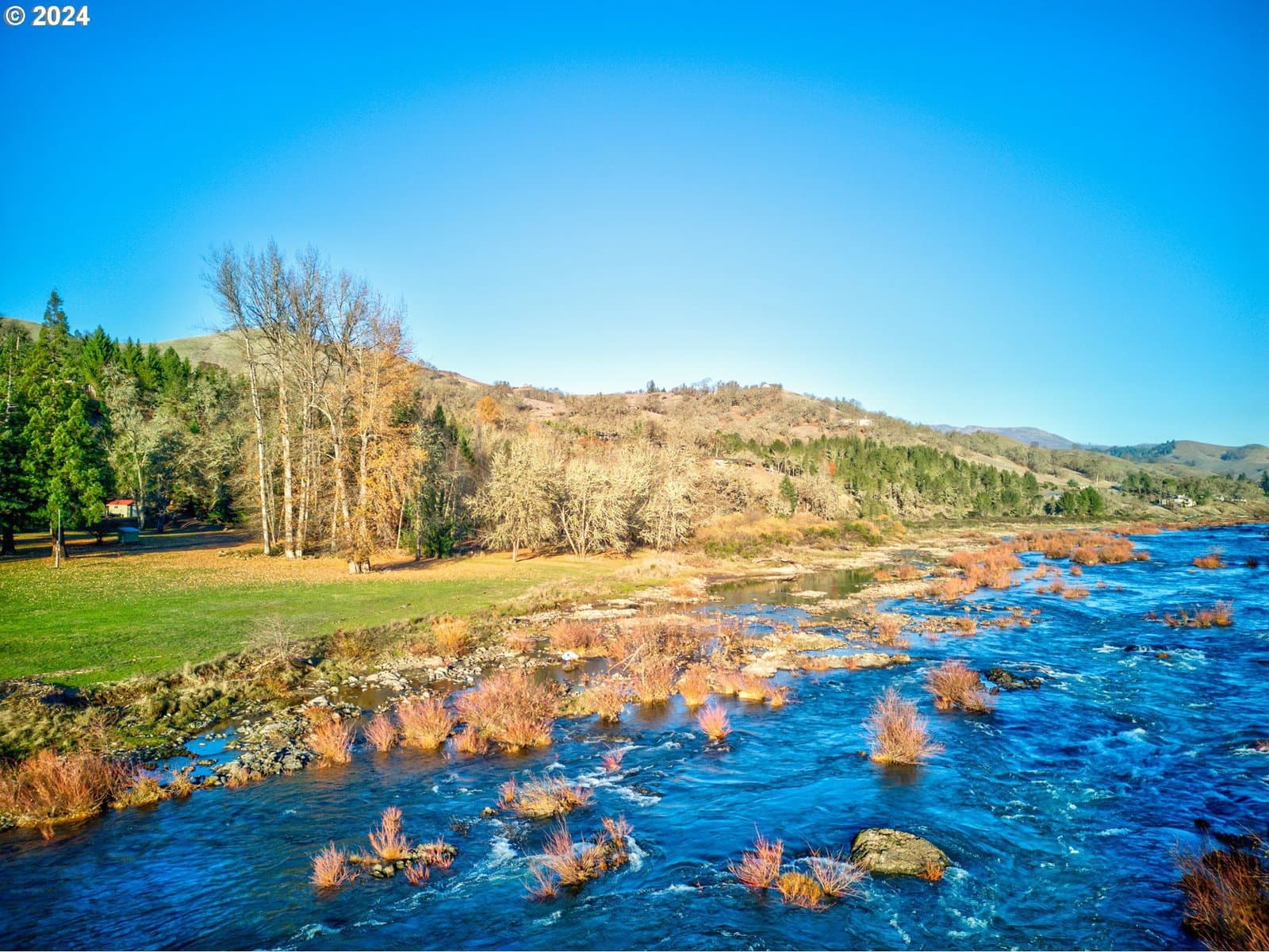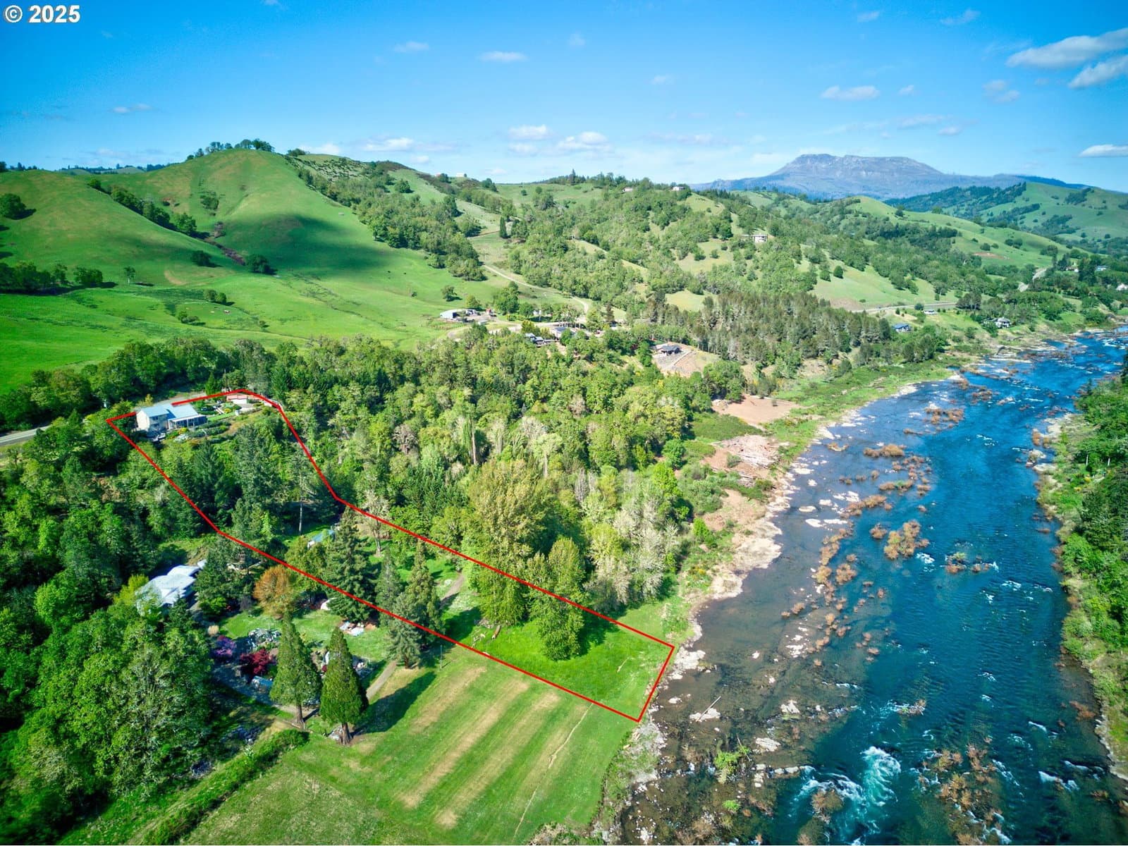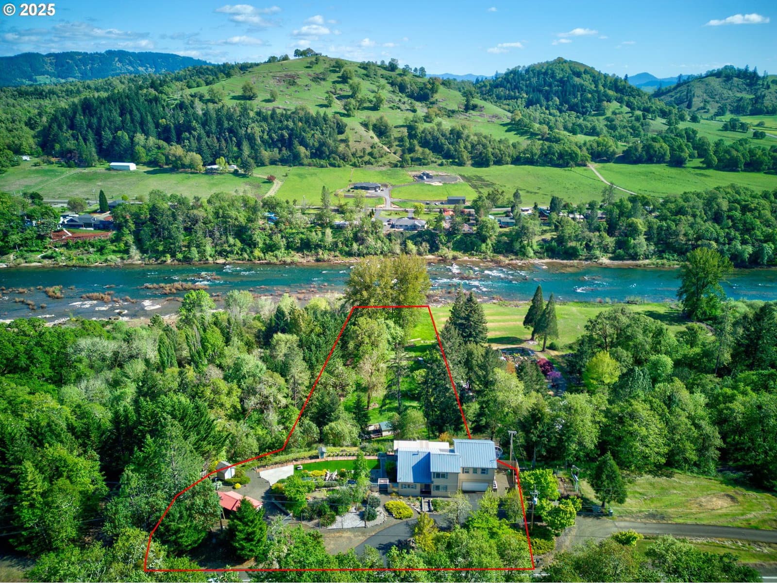 Discover your dream riverside retreat at 14115 North Bank Rd, Roseburg, OR! This custom-built 1994 home offers 3 bedrooms, 2 baths all within a spacious 1970 sqft. Nestled on 2.51 acres, with 1.5 acres that is flat with river access, enjoy stunning views of the North Umpqua River from your open floor plan with high vaulted ceilings and abundant windows. The metal roof and 2-car garage with a 50amp plug add practicality, while ample parking accommodates your boat or RV. Multiple outbuildings provide storage or workshop space, and outdoor seating areas invite relaxation and views of the river below. Entertain guests with an artificial grass area perfect for corn hole and bocce ball. Plus, a separate guest quarter with a 1-bedroom, 1-bath manufactured home offers privacy and convenience. This property is a perfect blend of tranquility and adventure. Don't miss out on this unique opportunity! Guest quarters is a riverfront 1 bd/1ba approx 408 sqft manufactured home with a 27x12 sqft deck. Has its own separate power meter. Kitchen has no range. Refer to Douglas County for possibility of making it into an ADU. has exterior 220V outlet.