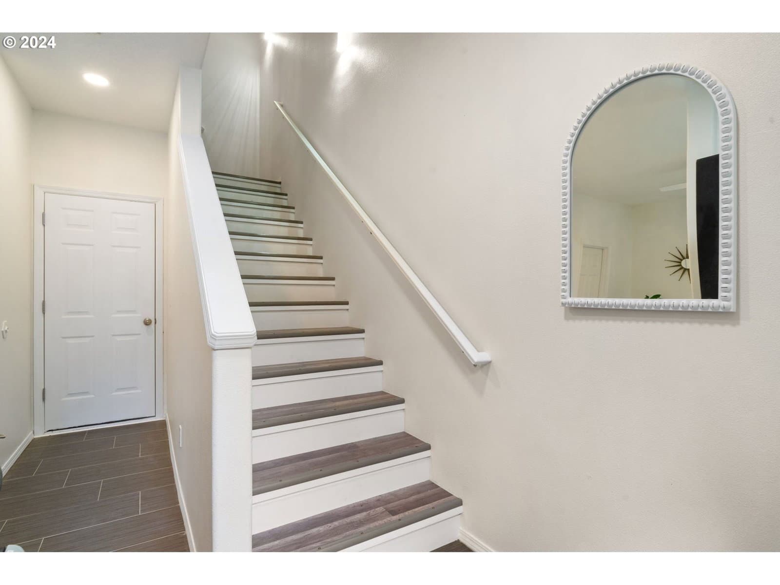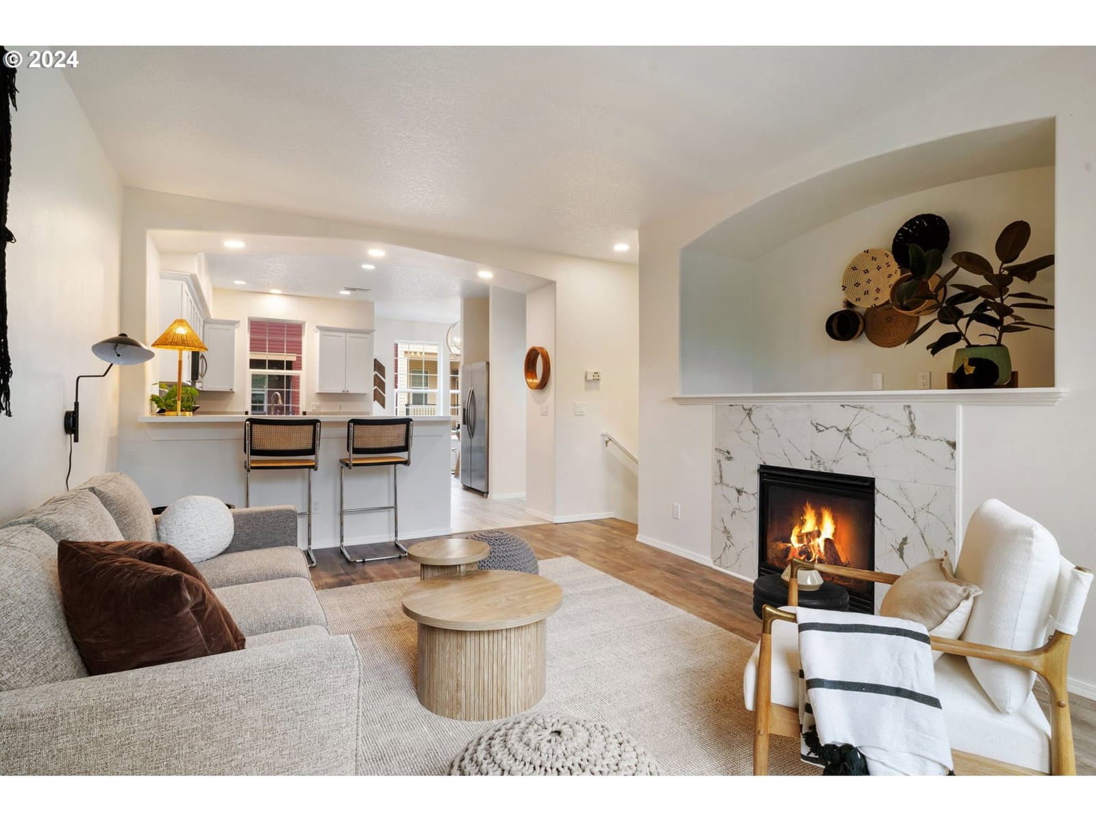 Beutifully updated Cratman-style townhome, featuring a brick front and a cozy front courtyard. 1st floor includes a 2-car attached garage and a den/office with bathroom, perfect for working from home or use as a study space. The second floor is the main living area, consisting of a spacious, open-concept layout. Here, you'll find the living room with fireplace, kitchen that includes stainless steell appliances, butcher block counter tops, eating bar, pantry, with a layout that integrates well with the living and dining space, dining room with wood floor, and a half bath for convenience. On the third floor, there are two master suites, each with its own en-suite bathroom, providing privacy and comfort. These master bedrooms are ideal for a roommate setup or simply extra guest space. The home’s thoughtful design blends Craftsman charm with modern amenities, creating a comfortable and functional living space. [Home Energy Score = 9. HES Report at https://rpt.greenbuildingregistry.com/hes/OR10233466]