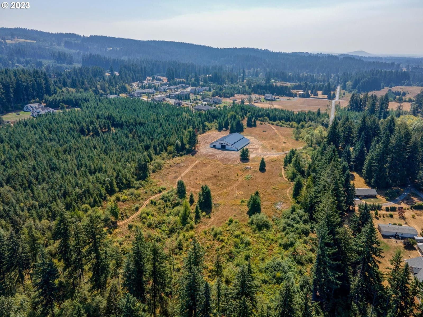 This is a rare opportunity to own 42.66 acres in Brush Prairie, only minutes from Vancouver. A versatile 12,960 SF pole building, perfect for a wide range of uses! This spacious structure is ideal for storage, an equestrian arena, or any other purpose you envision. The land features a picturesque combination of meadows, trees, breathtaking territorial views, and a creek running along its northern boundary. It is important to note that this is the last remaining parcel in a cluster subdivision, and the county strictly prohibits any further subdivision or residential construction. However, there are plenty of other possibilities for this land, including the option for an equestrian center, utilize it for agricultural purposes, or the investment potential of the timber that was planted in 2003. Buyer to verify all.