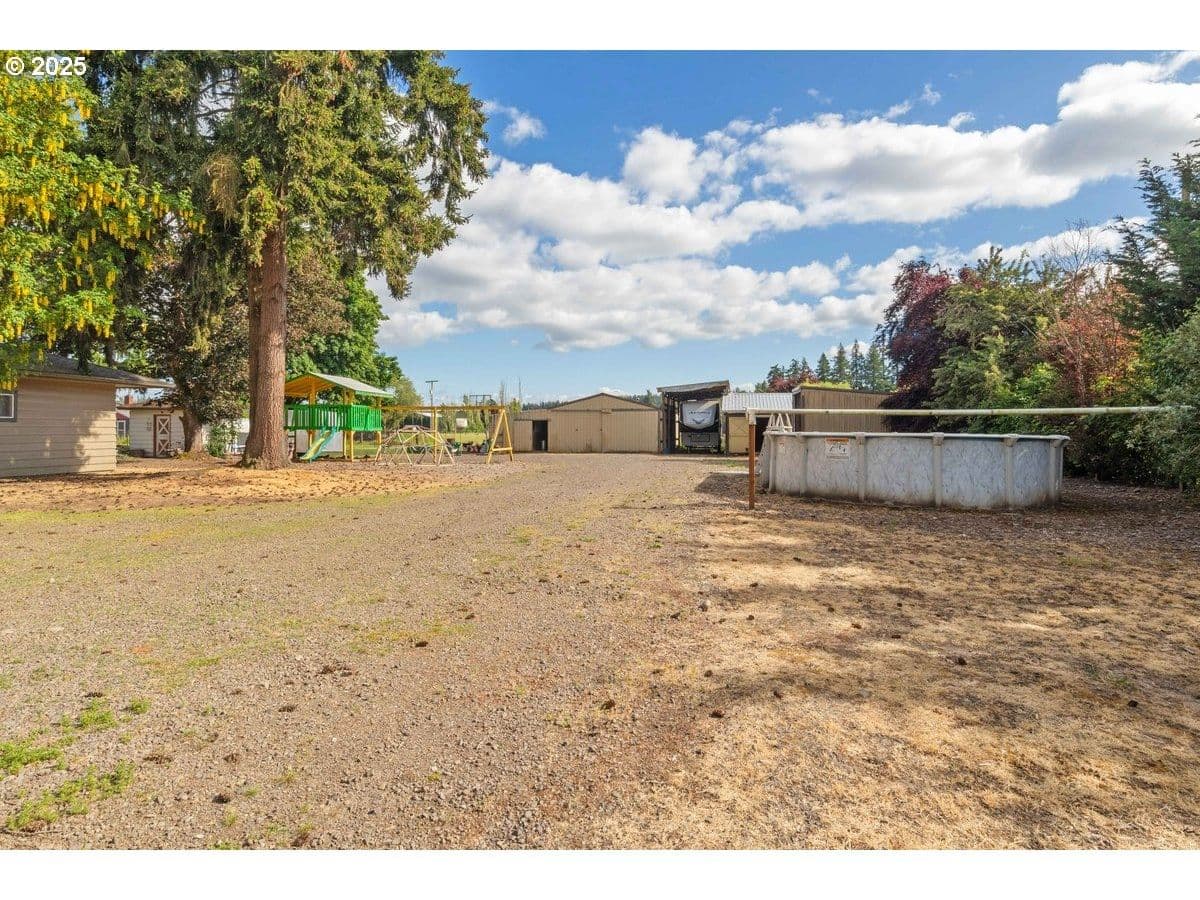 Back on the market with enhanced home improvements and an improved price! Escape to 2.85 partially fenced acres that offer stunning mountain views, conveniently situated just minutes from I-5. This spacious home spans 2,410 sq ft and features four bedrooms, two bathrooms, granite countertops, and a welcoming fireplace. The property also features a generous 1,874 sq ft shop, equipped with horse stalls, a tack room, a woodworking area, a corral, a pasture, and covered RV parking, 480 sq ft multi-purpose shed, a playground, a chicken coop, and ample parking space. Notable upgrades include a new HVAC system and furnace installed in 2017, along with a new roof added in September 2025. Recent reports confirm that both the well flow and water quality are in great condition.