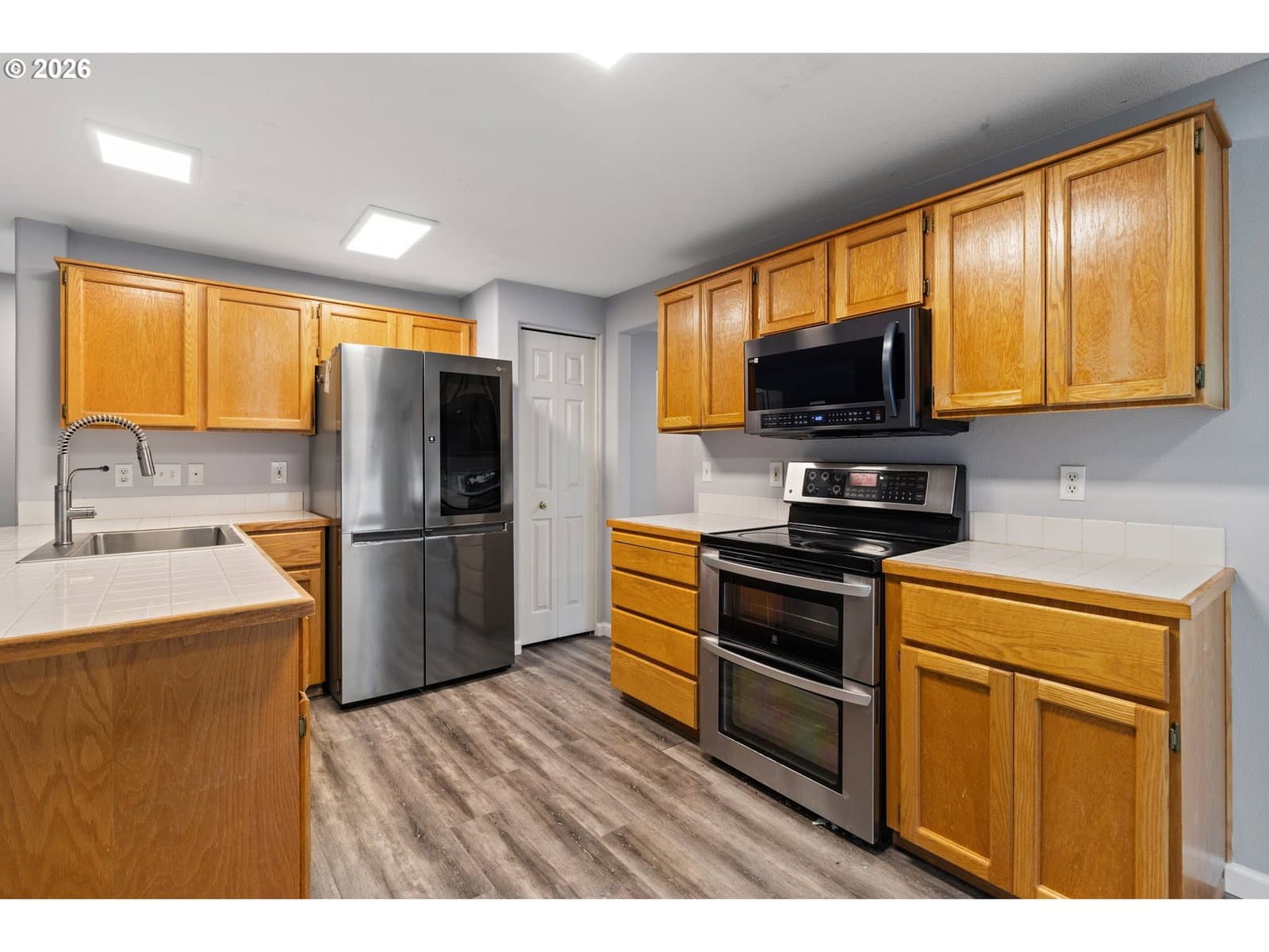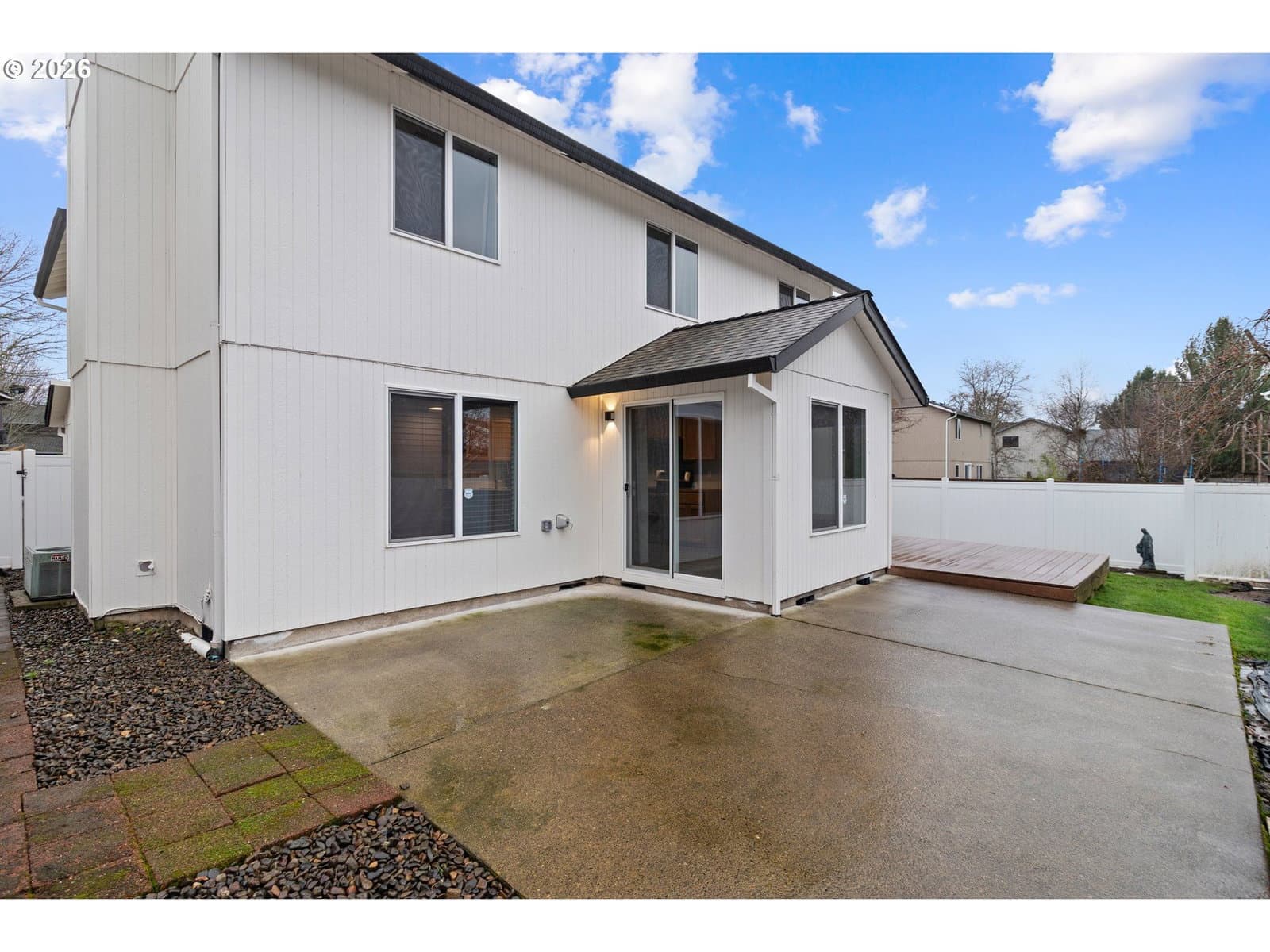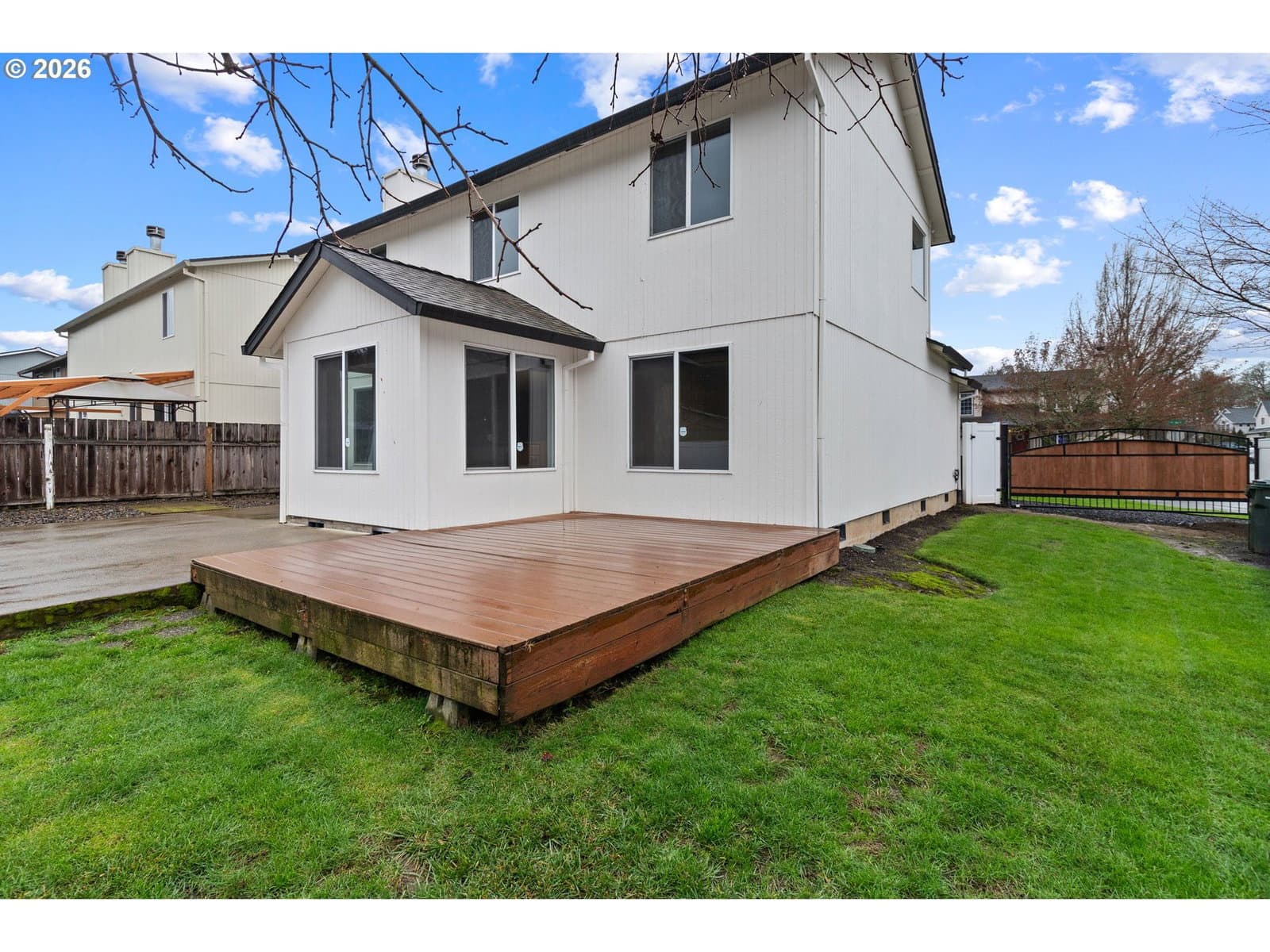 Remodeled Four Bedroom Traditional Home. Vaulted living room with beautiful bay windows and new flooring. Open modern kitchen with island and updated appliances. Vaulted dining room with backyard views. Family room with gas fireplace. Remodeled guest bath on main. Vaulted owners suite up with walk-in closet. Three spare bedrooms up and second remodeled full bath. Stunning gated yard with deck, patio, and shed. Central air. Freshly painted exterior. Move in ready! Great location in-between Tualatin Hills Park and Trachsel Meadows Park and close to grocery stores and shopping. Click the virtual tour link for a 3D home tour and floorplan.