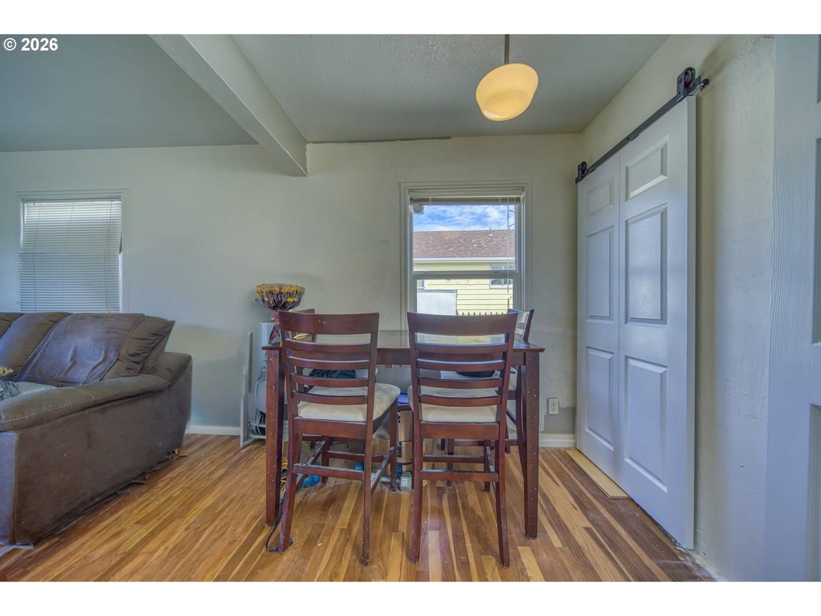 Welcome to this beautifully updated 2-bedroom, 1-bath coastal bungalow, perfectly situated to enjoy the best of Oregon’s scenic coast. This inviting home blends modern upgrades with timeless character. Step into a bright, remodeled kitchen featuring sleek quartz countertops, stainless steel appliances, and durable luxury vinyl plank flooring—perfect for both everyday living and entertaining. The living and dining areas showcase original wood flooring, adding warmth and charm, while the electric fireplace creates a cozy focal point for relaxing evenings.The updated bathroom offers a touch of luxury with a stunning marble walk-in shower. Outside, you’ll find a fully fenced backyard designed for both enjoyment and productivity, complete with raised garden beds and a greenhouse—ideal for gardening enthusiasts. Additional features include a newly poured concrete driveway and a detached garage for extra storage or workspace. Exciting potential awaits, as the garage is currently undergoing an expansion to add an additional bedroom and bathroom, scheduled for completion by the end of April. Located in the heart of Reedsport, you’ll be just minutes from breathtaking beaches, rivers, lakes, and the famous Oregon sand dunes—making this property a perfect full-time residence, vacation home, or investment opportunity. Don’t miss your chance to own a slice of coastal paradise!