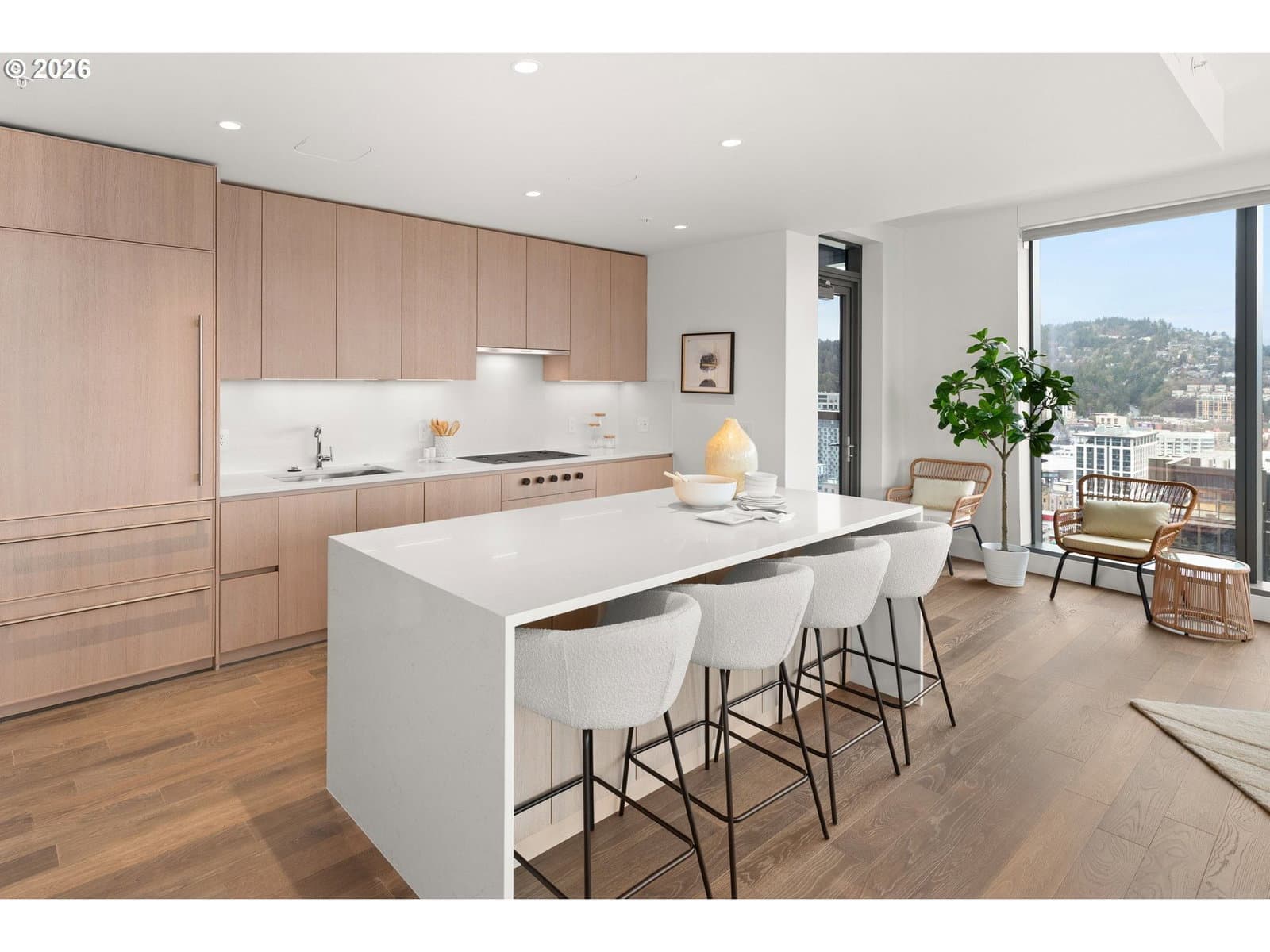 Welcome to The Ritz-Carlton Residences—where modern design meets legendary service high above downtown Portland. This idyllic northwest corner two-bedroom, two-and-a-half-bath residence offers a serene retreat bathed in natural light, with views of the Willamette River and the city. Clean architectural lines, exceptional materials, and a thoughtfully designed open layout create an atmosphere of effortless elegance. The gourmet kitchen is beautifully appointed with custom Pedini cabinetry, quartz countertops, and premium Wolf, Miele, and Sub-Zero appliances—perfectly suited for both everyday living and elevated entertaining. The spacious primary suite provides a calming escape, filled with natural light and complemented by a spa-inspired bath finished in timeless materials. An additional bedroom suite offers comfort and privacy for guests. A large private terrace seamlessly extends the living space outdoors—an inviting setting for morning coffee or evening relaxation above the city. Residents enjoy the legendary service and amenities synonymous with The Ritz-Carlton, including 24-hour concierge services, in-residence dining, a state-of-the-art fitness center, indoor pool, and an owners-only lounge. Ideally located in the heart of downtown, you are moments from Portland’s finest dining, galleries, parks, and streetcar access. A rare opportunity to own a home defined by world-class hospitality, elevated design, and an unmatched urban lifestyle.