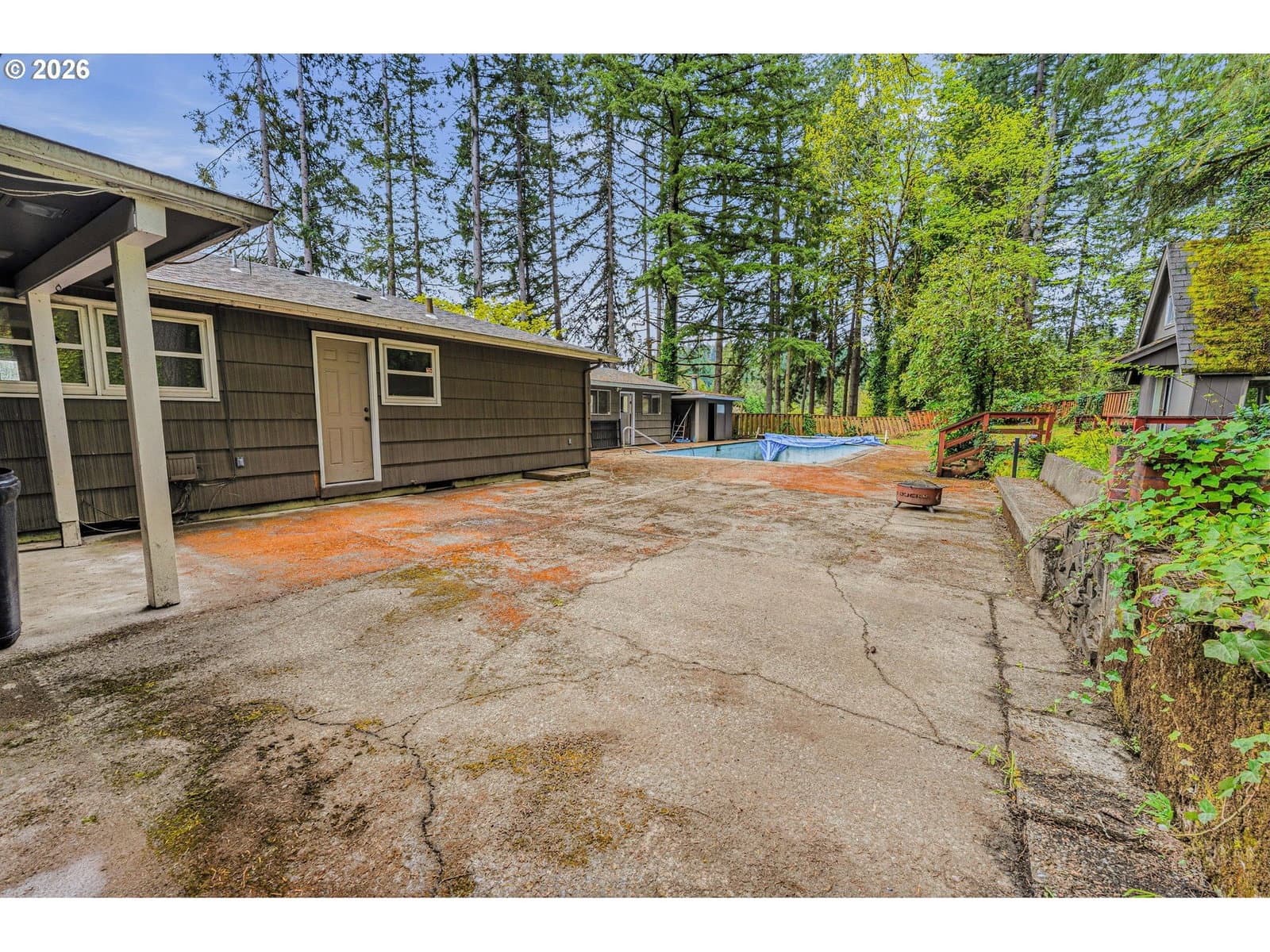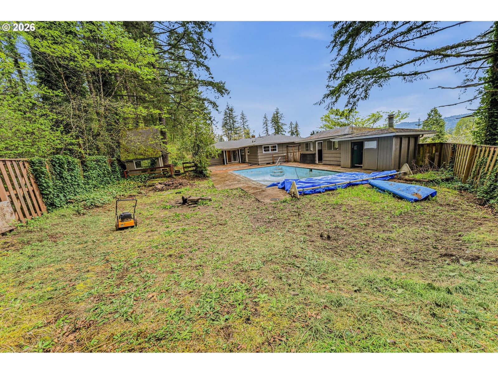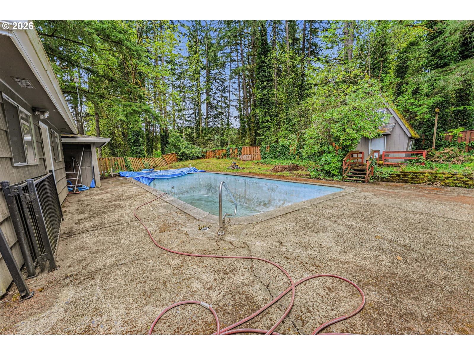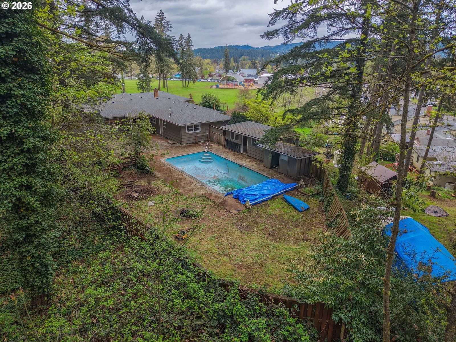 Spacious single-level home tucked away at the end of the road in Sweet Home. Situated on 1.5 acres, this 3,239 sq ft property offers privacy, space, and versatility. Features include 4 bedrooms (previous garage was converted into 5th bedroom), 2 bathrooms, a large kitchen with ample storage, and both a living room and family room for great separation of space. Outdoors, enjoy an in-ground pool with a pool house, plus a deck and patio ideal for entertaining. Property is on public water with a well for irrigation. The flat area next to the home provides plenty of room for RV parking, a future shop, or potential additional dwelling (buyer to verify). Treed setting adds privacy and a peaceful feel. New roof installed in 2020. Rare opportunity with space, privacy, and flexibility.