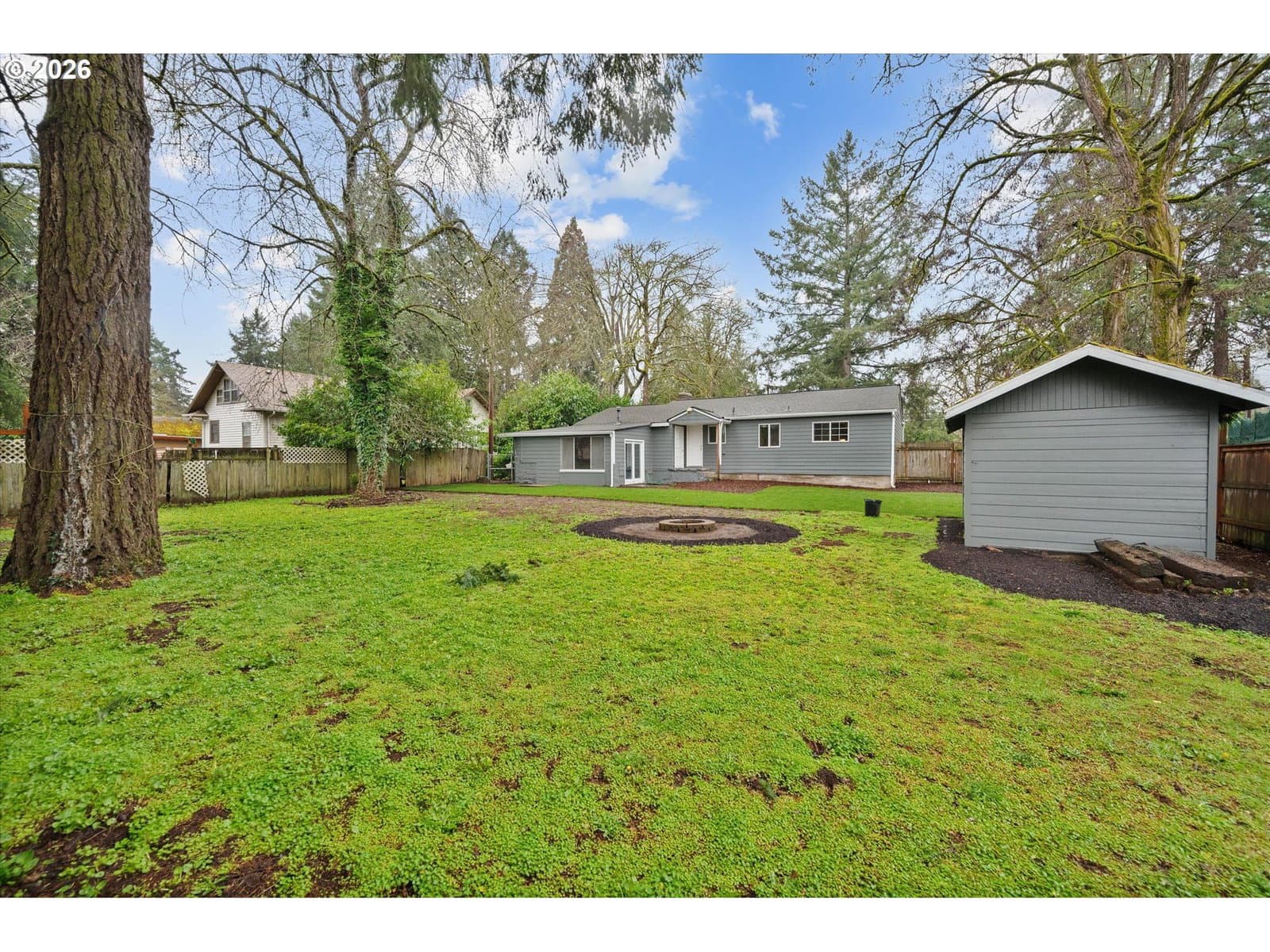 Classic 1950 ranch with mid-century character on a rare and usable 0.37 acre perfectly level lot in Milwaukie. The home features several unique mid-century details including curved walls, original hardwood floors, and a distinctive mid-century front door that sets the tone as soon as you arrive. Inside, the spacious living room is filled with natural light from two large windows and is anchored by a cozy brick fireplace with a warm wood mantle. The home includes two fireplaces in total, adding character and flexible living options. The third bedroom, which includes its own fireplace and separate exterior door, would make an ideal office or flex space. The primary and second bedrooms are both generously sized, with the primary offering a walk-in closet. The kitchen and bathroom are solid but original and show some wear, offering the next owner a great opportunity to bring their own vision and updates to the space. The sellers have invested approximately $50,000 preparing the home for the market, focusing on important system updates including installation of a new sewer line, extensive crawlspace improvements with reinforced posts and piers along with new insulation and vapor barrier, plumbing updates, a new 100-amp electrical panel, and new lighting throughout the home, along with fresh interior and exterior paint and updated landscaping with new sod and stone. The standout feature is the large, level 0.37-acre lot, something that is increasingly difficult to find this close to town. Located near the charming Oak Grove downtown area, the Park Ave MAX station, downtown Milwaukie, and with easy access into Portland, this property offers space, character, and the opportunity for the next owner to make it their own. [Home Energy Score = 1. HES Report at https://rpt.greenbuildingregistry.com/hes/OR10243858]