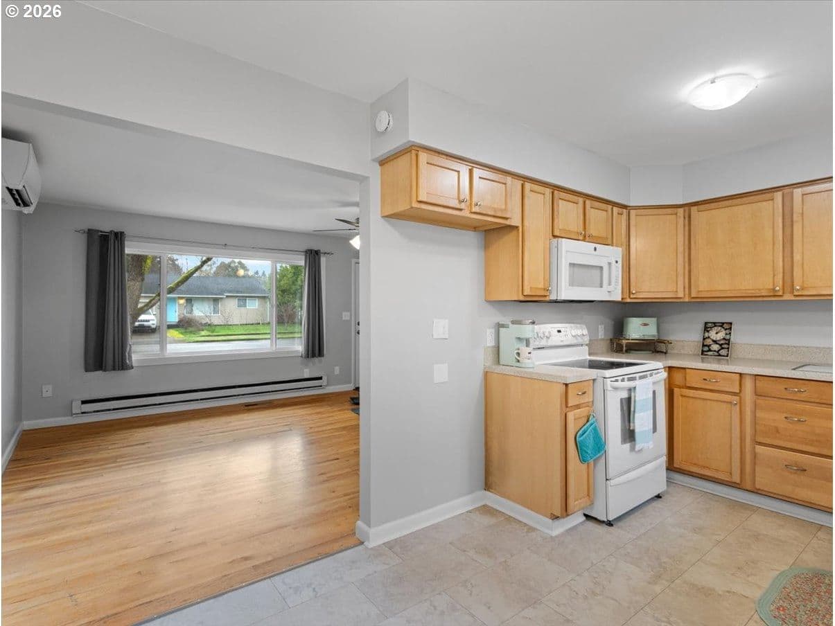 $15,000 price reduction!! Show and Sell today. Wonderfully refreshed "Heights House" style - typical post-war layout of 2 good sized bedrooms/1 bath + coat closet and linen closet (rare in homes this size). Hardwoods in living room, hall and both bedrooms (just cleaned/refreshed), NEW PAINT on entire interior (walls, ceiling, doors). Prof cleaning; home has vinyl windows, and a ductless HeatPump less than a year old. The baseboard heat remains intact for additional bedroom warmth in winter. Bathroom with deep cast iron/ceramic tub -- JUST refinished to a sparkling white! Both the Bathroom and kitchen sinks also just refinished. Bath has sparkling clean tile surround and a tile floor. Toilet was pulled and new rubber gasket installed. Kitchen cabinets NEW less than 10 years ago (in very good condition) plus new countertops and LVP just installed. Kitchen includes stove/oven, microhood (3 yrs old) and dishwasher (approx 9 yrs old) -no refrigerator. Roof replaced 2016 - total tear-off. Fenced backyard. Attached garage with washer/dryer, water heater, storage galore with 7' work bench + wall of heavy-duty open shelving + cabinets by laundry. Even stairs to garage storage loft! Be sure to view the floorplans with room measurements. This is THE ONE ... and well under $400k!!
