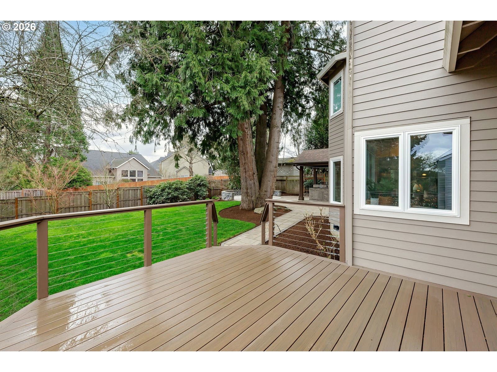 A home in one of Tualatin's finest neighborhoods is all ready for you. The current owners have completed many updates with custom features. In the chef's kitchen you will find stainless appliances, newer refrigerator 2023, wine fridge, quartz countertops and island, a 4-burner gas stove with double ovens, updated cabinets, a farm sink, a generous sized eating area that opens to the family room all with hardwood floors. The family room features custom built bookshelves, a stacked stone gas fireplace and ship lap walls. Outdoor living is enhanced with a new composite deck (2025), covered outdoor kitchen and fire pit plumbed with gas and a fully fenced private backyard with no homes behind it. The main level also includes a den with French doors for the remote worker. The living room, with soaring high ceilings and shiplap walls opens to a formal dining area that has been used as a gathering space for game nights. Upstairs has a landing/loft area for flex office or study area. The recently updated (2023) primary bedroom has a spa-like bathroom with tile floors, shower & double vanity sinks. The hall bath updates 2023 include lv tile floors, double sink vanity with quartz countertops and new faucets. There are 3 additional bedrooms, one of which could be used as a bonus room with skylights and a generous closet. Bedroom 2 has a custom closet system. New window blinds 2023, AC-2021. Lots of storage space under the house. Just minutes away you will find Brown's Ferry Park for kayaking or paddle boarding, river trail access with miles of trails leading to Cook Park and the Tualatin Community Park. The conveniences of the neighborhood school, medical center, restaurants, shopping and easy access to I-5 & I 205 are all just minutes away. This is a very special home in an outstanding walkable neighborhood with many activities throughout the year. OPEN HOUSE 3/15 1:30 - 3:30