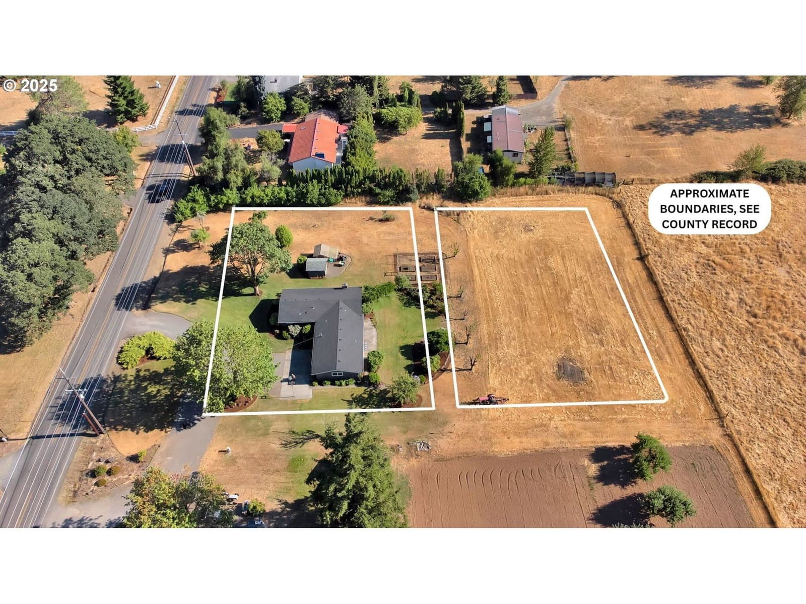 90774 Alvadore Rd is a one-family-owned ranch style homestead, that has been meticulously remodeled with mid-century modern charm and tasteful updates. It is situated on a level 0.52-acre lot, with an additional 0.44-acre lot, for a combined acreage of 0.96 acres. At 3 bedrooms and 1.5 bathrooms, this home boasts 1,472 square feet of living space, highlighted by large windows, vaulted ceilings, fresh interior paint and clean architectural lines that bring in an abundance of natural light and provide a sense of calm.Flooring includes Pergo engineered hardwood, cozy new carpet in the living area and primary bedroom, and porcelain tile to accent the elevated finishes of the fully remodeled bathroom. The large kitchen/dining area shines bright with sleek white quartz countertops, refinished cabinetry, and modern stainless-steel appliances.A solid new roof and exterior paint job give a crisp curb appeal, while also providing protection from the Pacific Northwest elements. Enjoy all of Oregon’s seasons in an outdoor haven that includes prune and cherry trees, blueberries, raised garden beds plumbed for overhead irrigation, and underground sprinkler-ready hookups for easy maintenance of the landscaped grounds. There is also a hot house with electricity and a pump house/shed with a newer well pump and ample storage for gardening tools. Orchards, open fields, grazing livestock and more are all around you!Located in the heart of Alvadore, this property offers rural tranquility, yet is only minutes from the city of Eugene and the Eugene Airport, and only an hour away from the captivating Oregon Coast. You can walk to the Alvadore Gas & Store, Post Office, and Community Library, or enjoy a short drive to Fern Ridge Lake for some recreational activities. The rarity of privacy, practicality and proximity make this home a unique opportunity in a special setting that you don’t want to miss!