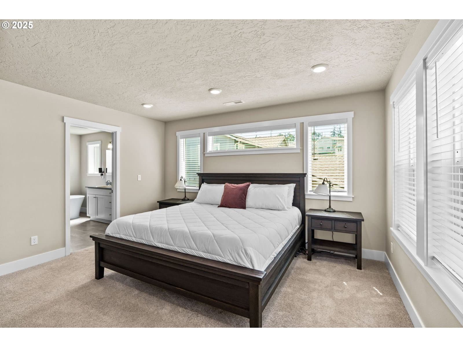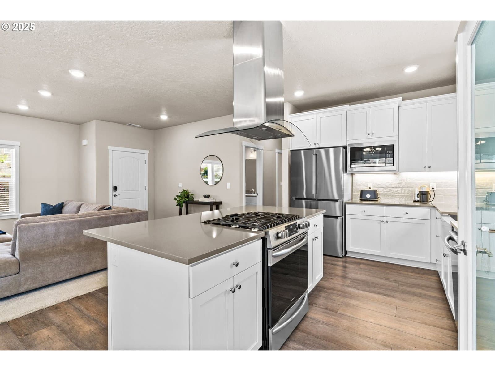 Located in South Eugene’s prestigious Moon Mountain subdivision, this beautifully built 2023 home by award-winning MonteVista Homes showcases the popular Douglas Floorplan, offering 4 bedrooms, 3 full baths, and 2,479 sq ft of thoughtfully designed living space.The open-concept kitchen is a chef’s dream, featuring quartz countertops, stainless steel appliances, a farmhouse sink, large island with 5-burner gas range, and a custom designer range hood. The kitchen flows effortlessly into a spacious living area complete with a gas fireplace and expansive views—ideal for both entertaining and everyday relaxation. Upstairs, you'll find a versatile bonus room, two well-sized bedrooms, and a stunning primary suite with a spa-like bath that includes a soaking tub, tiled shower, and dual vanities. On the main level, a private guest suite with full bath provides the perfect space for visitors or a home office. Enjoy outdoor living year-round on the covered patio overlooking a professionally landscaped yard with a sprinkler system—and take in breathtaking views of the city and surrounding mountains. All of this just minutes from the University of Oregon, I-5 access, and the vibrant amenities of downtown Eugene.