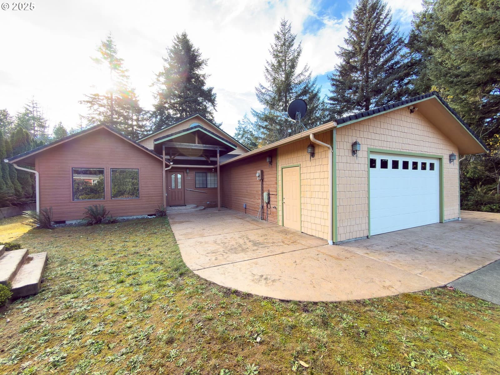 Tucked away at the end of a quiet East Bandon street, this custom-built craftsman-style 2212 s/f home offers 3 bedrooms & 2 bathrooms perched on a spacious .40ac parcel in a highly desirable, wind protected location offers warm architectural character throughout, including vaulted ceilings lined with T&G pine, a large and inviting living room, and a custom kitchen design featuring granite countertops and a large butcher block island. A cozy reading room anchored by an efficient woodstove and picture windows that overlook the serene backyard creates a perfect little retreat. The spacious primary suite also features vaulted ceilings, an office nook and a walk-in closet. Practical features include a Trane heat pump, pull-down ladder to attic storage, a spacious attached double garage, and a charming potting shed/sunroom located off the side of the garage. Outdoor living shines with stamped concrete walkways & patio pads and a large covered back deck with composite decking overlooking a private backyard framed by tall fir trees and forest vibes. A standout bonus is the detached shop building located behind the home, offering excellent versatility for hobbies, storage, or potential conversion into a game room or creative space. Altogether, this property delivers exceptional value, privacy, and functionality in one of East Bandon’s most appealing neighborhoods. Take this opportunity to make this great Bandon home yours.