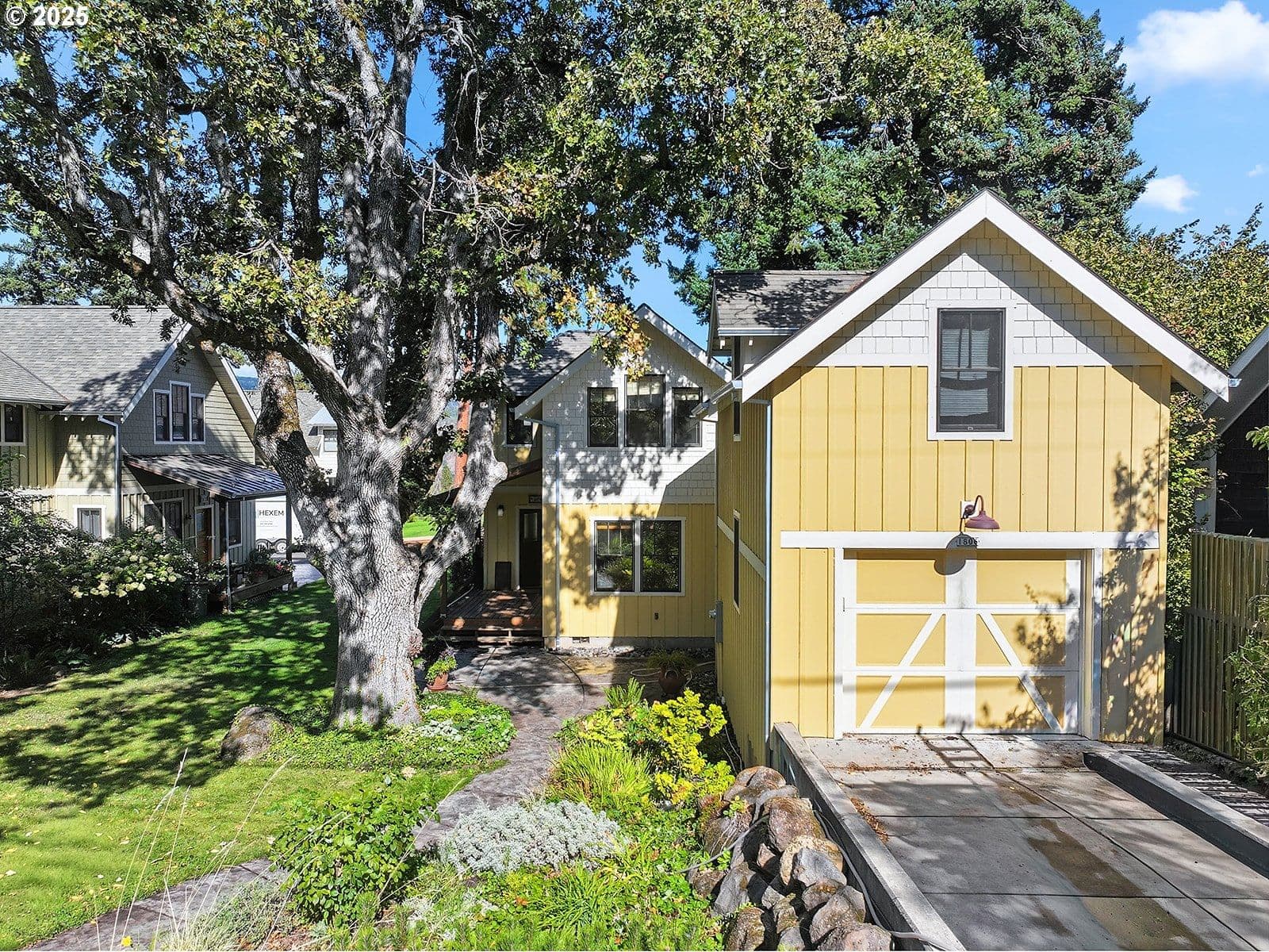 Hood River custom 2-story vintage-inspired home. This 1,989 sq ft +/- home features three bedrooms and 2.5 bathrooms, boasting an open, contemporary floor plan. The home incorporates unique touches, including antiques and repurposed materials, custom finishes, Pella windows, tile bathroom floors, schoolhouse lights, and an antique front door.The main level features stunning hardwood oak flooring, a kitchen equipped with a gas range, stainless steel appliances, a deep sink, and a large, antique-inspired island that serves as a spacious workspace with a custom glass fixture. The primary suite is conveniently located on this level.Upstairs, you'll find a versatile open bonus area perfect for an office or sitting area, offering views of the Columbia River and a partial view of Mt. Adams. This level also includes two additional bedrooms, a full bath, and a very large closet space concealed behind a slider barn door.The property also includes a detached garage with an unfinished bonus room above and extra storage space below. This home is turn-key and move-in ready. Close Proximity to downtown Hood River. Seller is a licensed Broker in the State of Arizona.