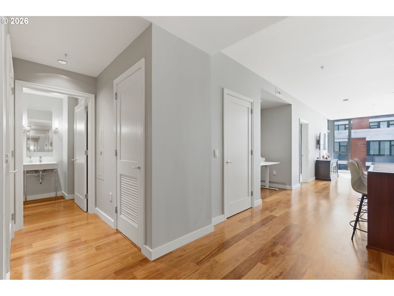 Live above it all at Atwater Place—an iconic glass tower perched along the Willamette riverfront. This single-level retreat offers 1 bedroom plus a den, with no neighbor above, giving you that rare mix of privacy and panoramic light.Inside, floor-to-ceiling windows flood the space with sunshine, while clean, modern finishes— quartz counters and rich hardwoods—add a polished feel throughout. The chef-worthy kitchen features sleek stainless steel appliances, a gas cooktop, and an eat-at bar that makes both everyday living and entertaining effortless.Step out onto your private deck and take in peaceful corridor views of the river, or unwind in your serene primary suite, complete with a spa-inspired bath featuring a soaking tub and tiled shower. You’ll also enjoy the convenience of separate storage unit, dedicated parking, and bike storage. Life at Atwater Place means full-service comfort, with 24-hour concierge and security, plus amenities like a library and party room. The HOA covers gas, water, sewer, trash, and internet making day-to-day living refreshingly simple. And the location? Hard to beat. Stroll along the riverfront paths, hop on the streetcar, or explore nearby hotspots including Tilikum Crossing, restaurants, coffee shops, and downtown Portland. A quick jaunt to the the aerial tram to OHSU. With a Bike Score of 98, the city is quite literally at your doorstep. Modern, vibrant, and effortlessly livable—this is South Waterfront living at its best.