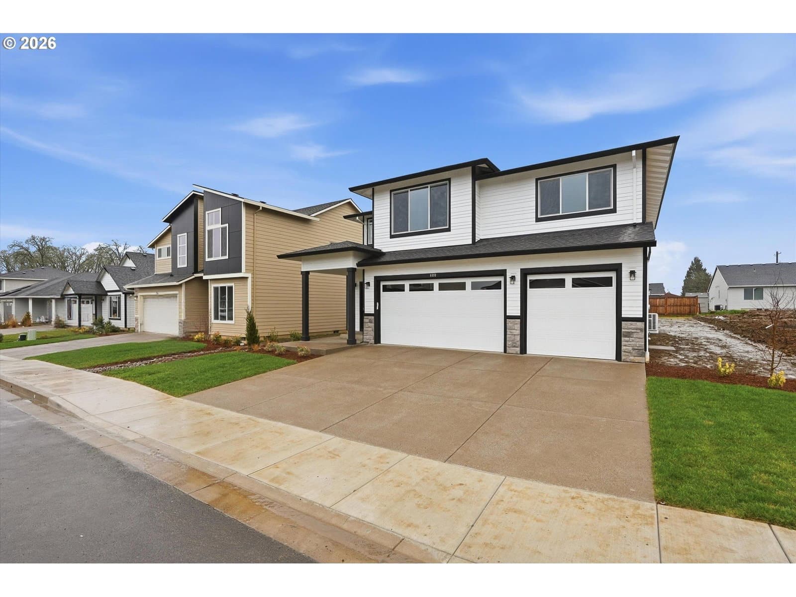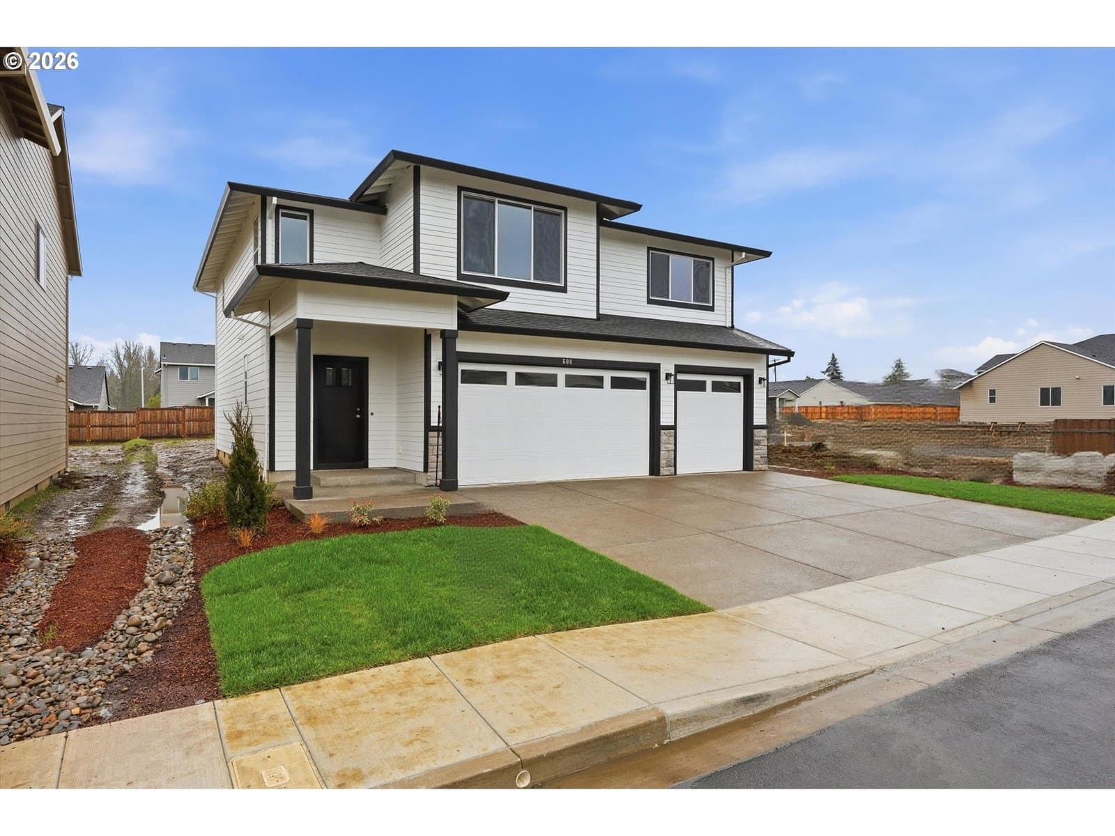 New Chad E Davis Construction built home. 5-bedroom modern style home with 3 car garage. 9ft main floor ceilings with great room and fireplace. Spacious kitchen with generous island, ss appliances, quartz counters and full tiled backsplash. Vaulted primary suite with ceiling fan, full bath with quartz counters, fs tub and walk in closet. Taxes TBD. Front landscaping with irrigation only.