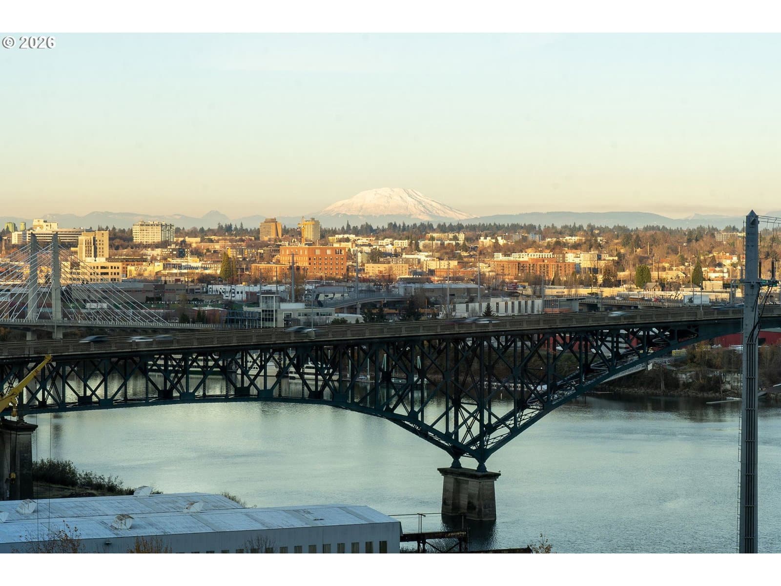 Soak in breathtaking views of Mt. Hood, Mt. St. Helens, the Willamette River, and Portland’s skyline from this exceptional Meriwether home. This spacious one bedroom layout offers a rare, fully enclosed den/office with a sliding door, two full baths, fireplace, generous primary suite with walk-in closet & bathroom with double sinks, large covered deck and amazing views from every room. Home is complete with 2 single parking spaces & storage unit. Truly one of the best floor plans & view homes in South Waterfront - a tranquil neighborhood where nature meets city with the river, parks, restaurants, fitness clubs, Streetcar, OHSU & more.
