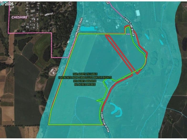 Farm only, no outbuildings. 167 total acres with 156 tillable and 100 acres with non-cancelled 1966 priority water rights from the Long Tom River. The farm is well-suited for various types of crops, particularly grass seed and forage production as well as great livestock grazing opportunities. The versatility can be expanded by drain tiling. With almost one mile of Long Tom River frontage this property provides numerous recreation, fishing and waterfowl hunting opportunities. See Assoc Docs for More DEtails See Assoc Docs for More DEtails