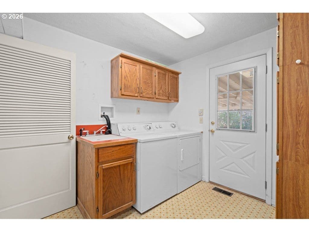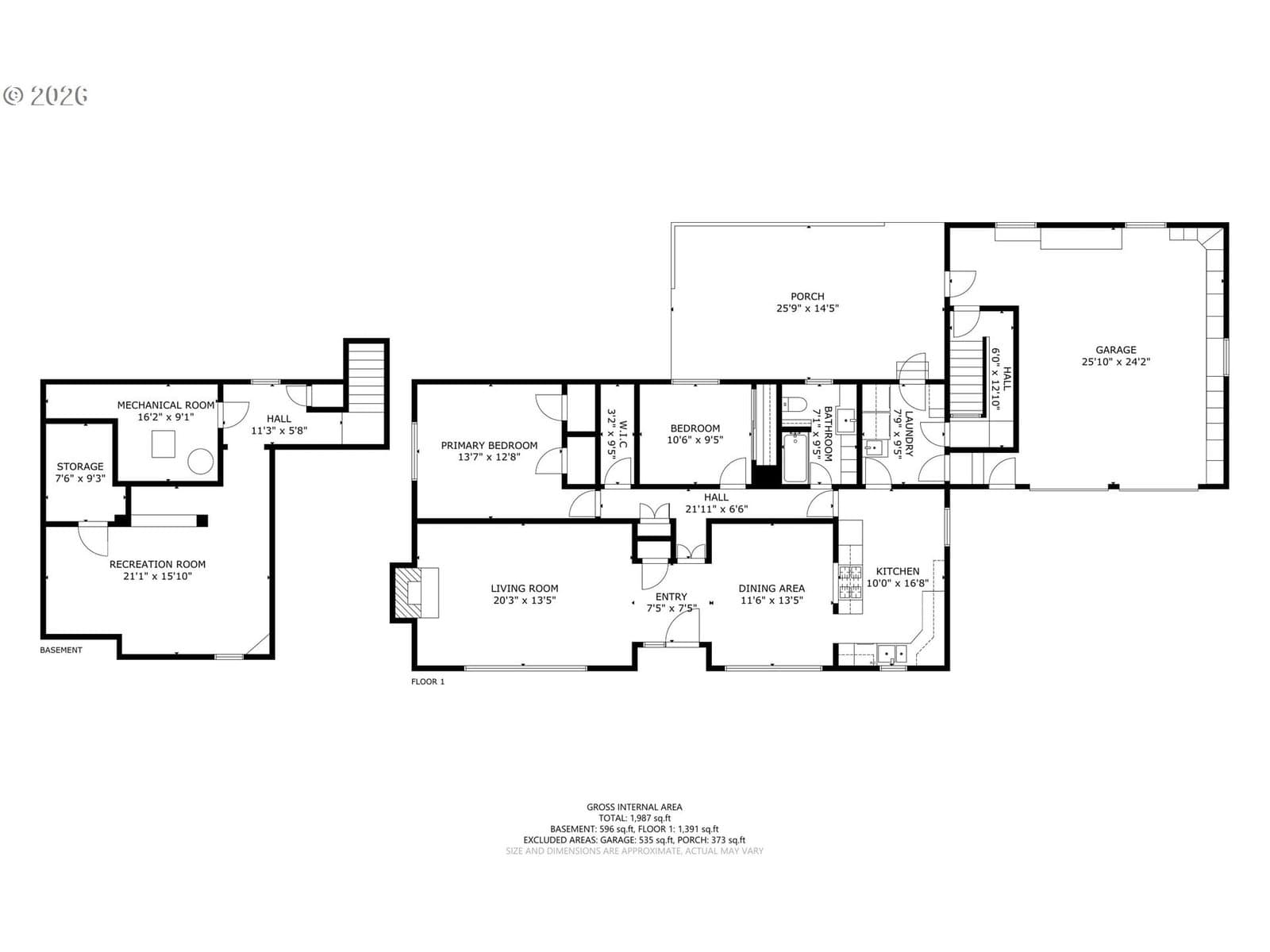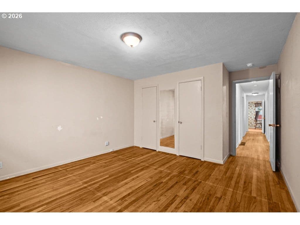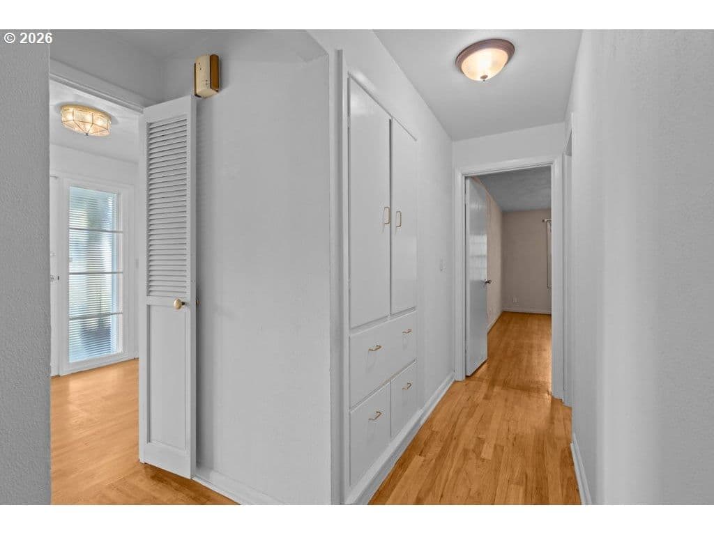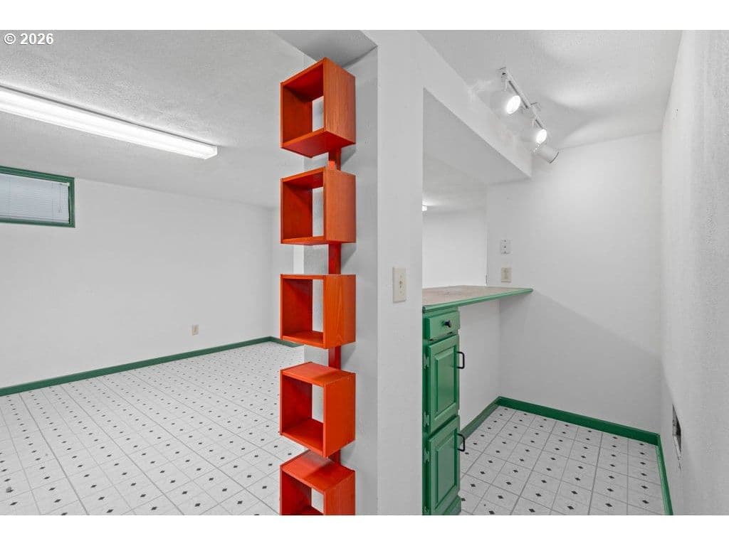 Classic Portland charm on a spacious .37-acre dividable lot with a gigantic driveway and oversized two-car garage. A formal entry with coat closet opens to a light-filled living room featuring hardwood floors and a burgundy wood-burning fireplace. The open dining room connects to a peek-a-boo eat-in kitchen with original cabinetry, pull-out shelves, and a built-in spice rack.The main level offers two bedrooms with hardwood floors and ample closet space, plus a full bathroom with tub/shower combo and vanity sink. Original hallway storage adds function and charm. The basement, accessible from the garage and laundry room, provides flexible space ideal for a 3rd bedroom or media room, guest area, or potential rental use, with a utility room, built-ins, and a bar area. Enjoy a fully fenced backyard with room to expand, garden, or develop. The oversized garage offers generous storage and overhead space. Laundry room includes sink, washer, and dryer. A rare blend of lot size, storage, and character in Portland. [Home Energy Score = 1. HES Report at https://rpt.greenbuildingregistry.com/hes/OR10244038]