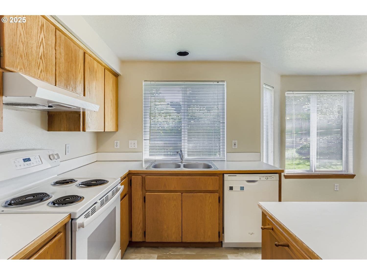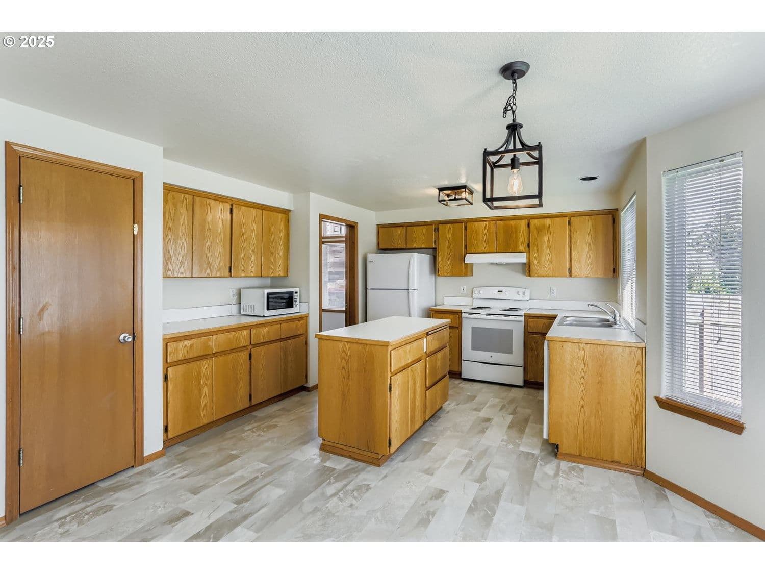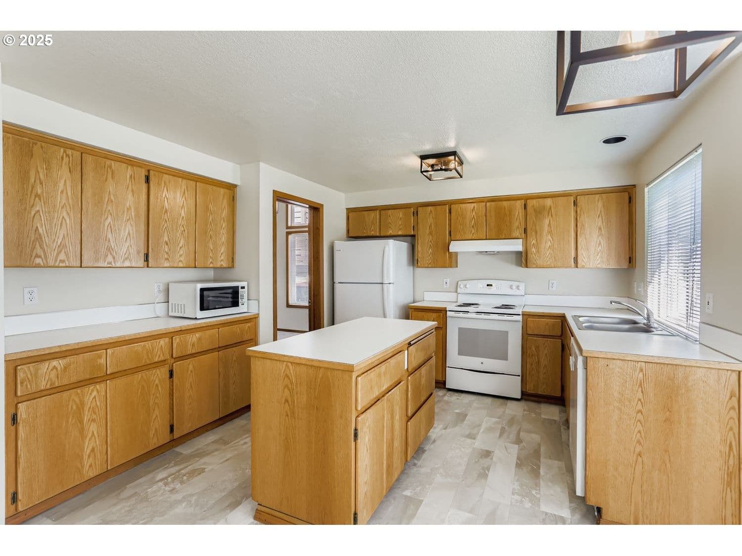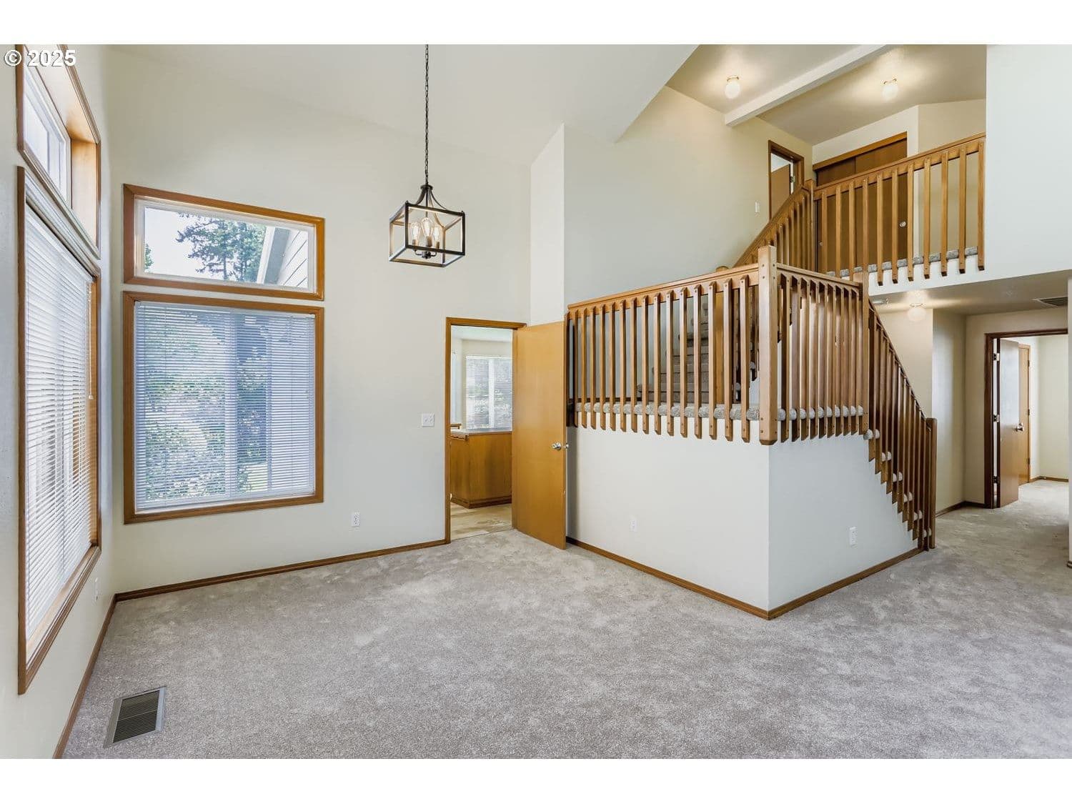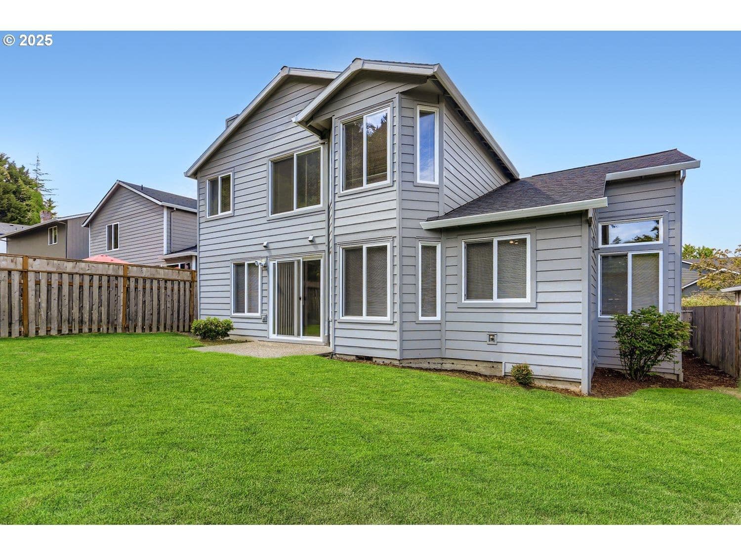 Updated contemporary on one of the best lots in the neighborhood! Situated on a quiet loop street, the home has been updated with a brand-new composition roof, fiber cement siding and recent paint, all-new carpet, just-refinished cabinetry, updated fixtures, and more. High-quality construction with large room sizes, vaulted ceilings, open railings, and numerous skylights and vinyl windows for excellent natural light. The open-concept kitchen includes new flooring, walk-in pantry, island, all appliances, and dining nook. The kitchen is open to the family room, featuring a fireplace and slider to the patio. The home offers a main-floor bedroom and full bathroom for easy accessibility. Primary suite offers vaulted ceilings and a massive walk-in closet, walk-in shower, soaking tub, skylight, and dual sinks. There are two additional upstairs bedrooms, plus a conveniently located third full bathroom. Fantastic lot offers a fenced backyard with patio, excellent privacy, and serene treed views. Outstanding location, close to Progress Ridge, THPRD parks and trails, and easy access to 217.