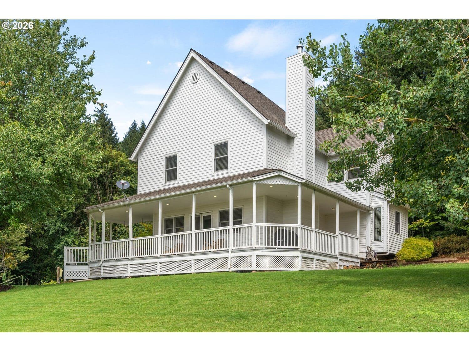 An Idyllic Farmhouse with Victorian Flair. This picturesque and private acreage site offers the perfect blend of peaceful charm with Oregon Wine Country sophistication. Stunning territorial & valley views. Minutes to the Allison Inn and Spa, downtown Newberg (via Bell and Springbrook), B&Bs, parks and dozens of renowned wineries. Substantial kitchen & bath updates, extensive built-ins, hardwood & laminate flooring throughout. An open living room that invites connection and a well-equipped kitchen with a breakfast nook that allows for spacious and functional meal prep. System upgrades include an exceptional well, dual heat pumps per each floor & dual hot water heater tanks. Recent lower level bonus and wine room addition with extra storage. Massive attic for storage or potential addition. New gutters recently installed. Exterior amenities include 24'x 48" shop, covered RV parking with power, wraparound porch, & sprinklered lawn. Here is chance to own a private retreat in the Heart of Oregon Wine County. An absolute must see for the wine enthusiast.
