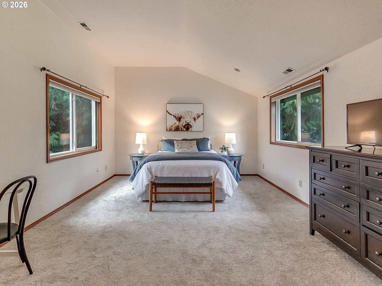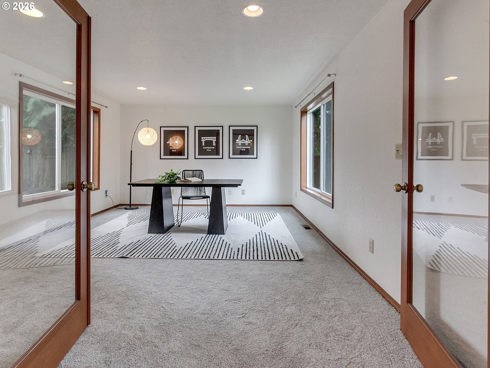 Architecturally distinctive and updated, this 4 bedroom, 2.5 bath Tualatin home offers a spacious and versatile layout designed for everyday living. Select areas feature elevated and partial vaulted ceilings, along with expansive windows and hard surface flooring that invite natural light and create an open, welcoming feel throughout the main level.The updated kitchen showcases rich wood cabinetry, stainless steel appliances, slab countertops, and generous storage, while seamlessly connecting to gathering spaces, courtyard and backyard access for effortless entertaining.A dedicated main level office with glass double doors provides ideal flexibility for remote work, hobbies, or guest space.Upstairs, the primary suite offers privacy and comfort with its own bath featuring beautiful finishes, a walk in closet, and a skylight, bringing soft natural light into the retreat. Additional bedrooms and a bonus sitting area create room to spread out.A fully fenced yard, covered entry, and attached garage round out this great find, ideally positioned near parks, schools, and everyday amenities.Seller has completed a professional home inspection prior to listing, available upon request. Recent improvements include a new furnace in 2024, new roof in 2025, new sump pump system in 2025, and fresh interior paint with new carpeting throughout in 2026, offering meaningful system and cosmetic updates for the next owner.