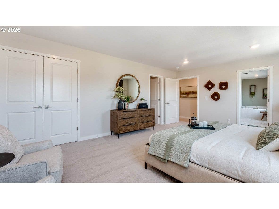 New construction in Salem! The Galen floor plan at Sorrento Estates by D.R. Horton is a two-story home is 2,627 square feet and has 5 bedrooms, 2.75 bathrooms, and a 2-car garage. There is a bedroom and full bathroom with walk-in shower and a storage closet on the main level. through the entryway you will discover an airy open concept living space with a kitchen, dining room, and a great room that boasts an electric fireplace. The lovely kitchen features sleek shaker-style cabinets, an island, stainless steel appliances, and solid-surface countertops. Upstairs, the three secondary bedrooms are at the back of the second floor, and each have their own closet. The secondary bathroom features a double sink vanity and a tub shower. Across the hall, there is a tech niche as well as a laundry room for swift convenience. Located towards the front of the second level, there is the primary bedroom features two closets in the bedroom. The first being a large walk-in closet and the second being a standard storage closet. In the primary bedroom, there is also an en suite bathroom that is perfect for spa nights including a double sink vanity, a bathtub, a walk-in shower, and an additional storage closet. Receive a closing cost credit with use of builder’s preferred lender, reach out for more details. Be a part of this wonderful community at Sorrento Estates! Photos are representative of plan only and may vary as built.