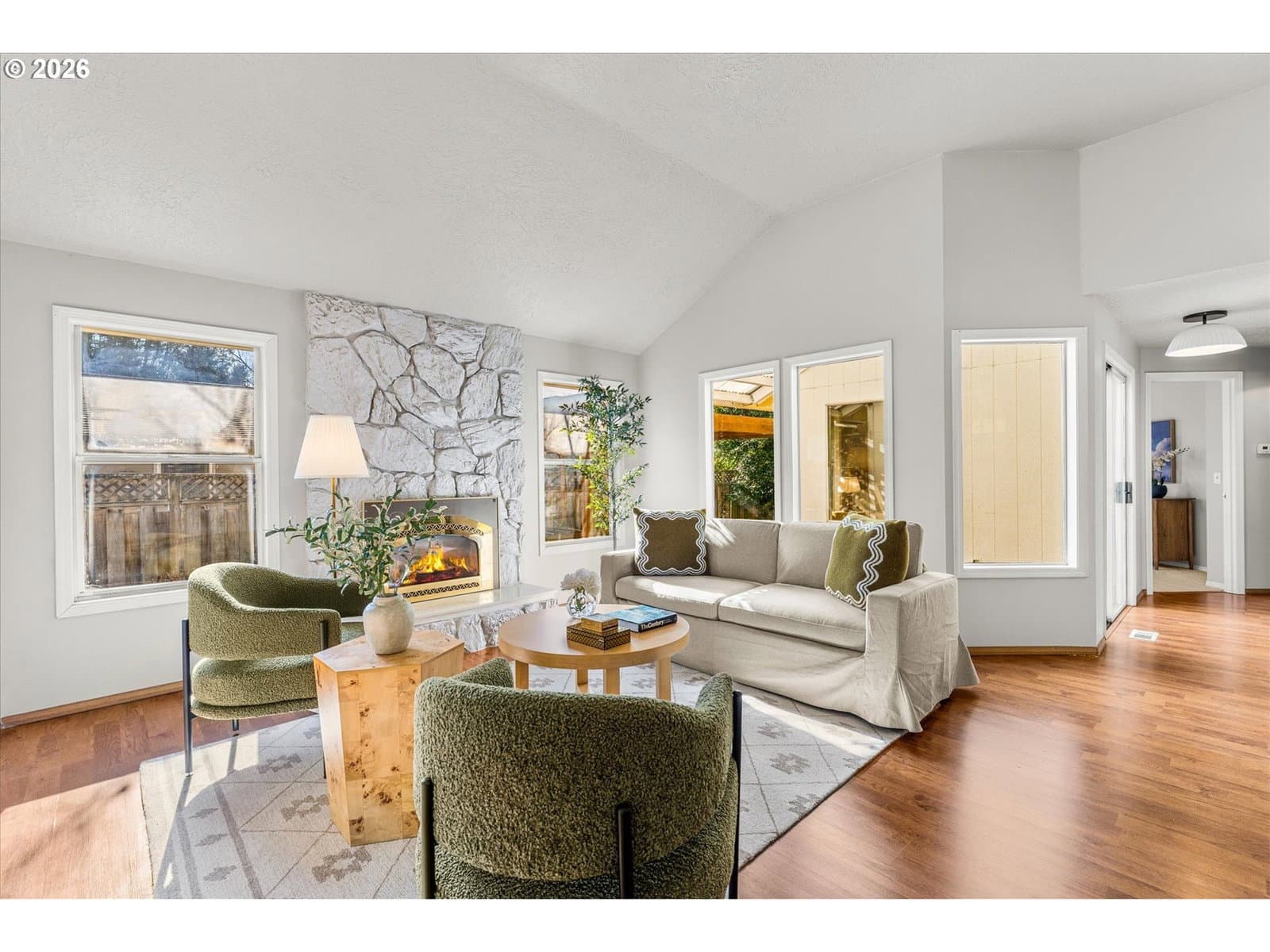 Lovingly maintained one-level home filled with exceptional natural light and a well-designed floor plan. The vaulted living room features a welcoming fireplace and connects nicely to the dining area, while convenient main-floor laundry adds to the home’s functionality. Fresh interior paint provides a clean, updated feel, and the primary suite includes a private ensuite bath.An attached two-car garage offers everyday convenience and additional storage. Situated on a corner lot at the entrance to a private road, the fully fenced backyard provides privacy, mature landscaping, and an expansive deck with a covered section for year-round use. With easy access to public transportation and close proximity to the urban core, this is an excellent opportunity to own a move-in-ready home at this price point. [Home Energy Score = 7. HES Report at https://rpt.greenbuildingregistry.com/hes/OR10243960]