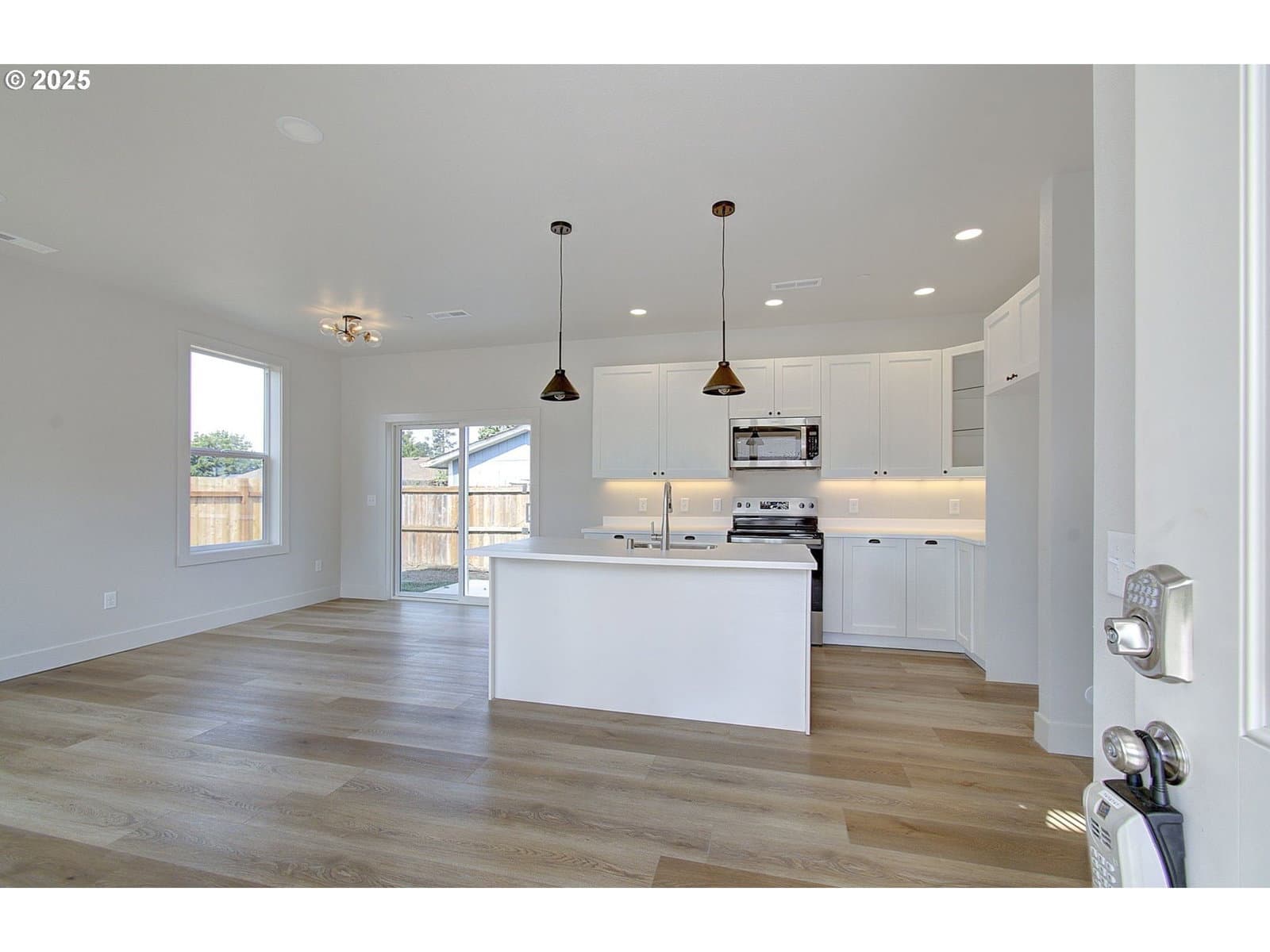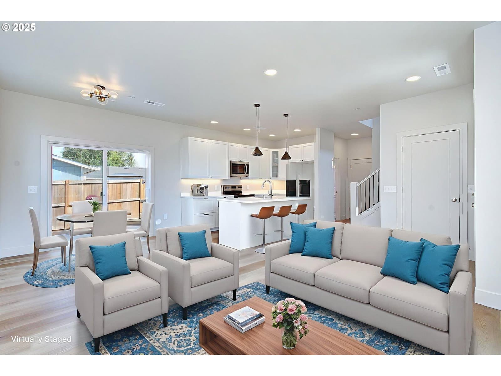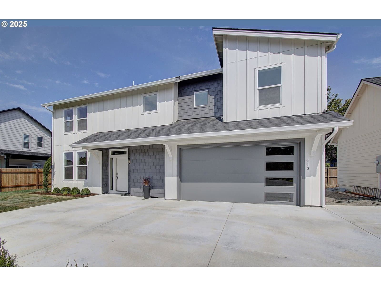Experience modern living in this newly built two-story home, privately set at the end of a long shared drive for added seclusion. Thoughtfully designed with both style and functionality in mind, this 3-bedroom, 2.5-bath residence features an open-concept layout accented by tasteful farmhouse-inspired finishes. The main level offers durable laminate flooring, upgraded lighting, and a spacious great room that seamlessly connects to the kitchen—complete with stainless steel appliances and ample room for cooking and entertaining. Step outside to the back patio, perfect for morning coffee or summer gatherings. Upstairs, you’ll find three generously sized bedrooms, including a comfortable primary suite, along with beautifully finished bathrooms. Additional highlights include an EV charger in the garage and modern touches throughout. Truly move-in ready and designed for effortless everyday living.