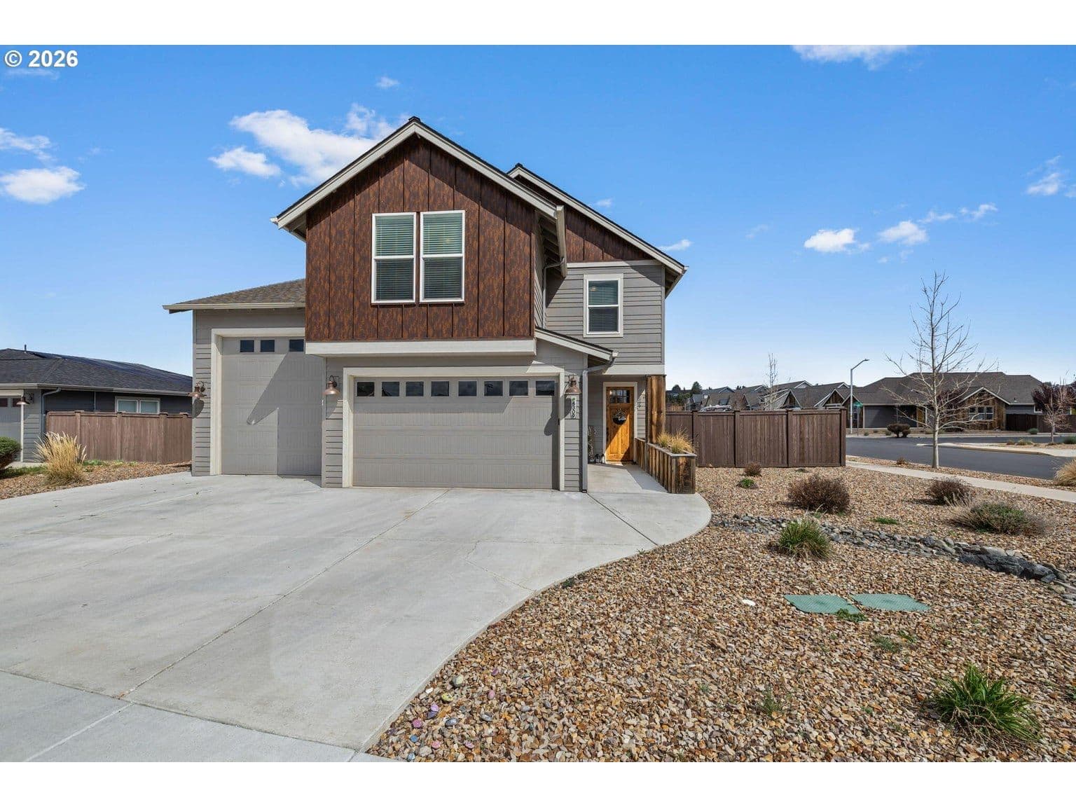 Welcome to Prairie Crossing -- SW Redmond's sought-after community ftring a 1.41-acre park, covered pavilion, dog park, bocce court & walking trails. The spacious entryway opens to a vaulted great room flooded w/natural light from lg windows throughout, a cozy stacked stone fireplace w/mantle & decorative shiplap accent wall. An open concept Chef's kitchen ftrs a large central island w/breakfast bar seating, black leather granite counters, gas cooktop w/hood, built-in double ovens, corner pantry, abundant cabinetry/prep space & built-in eating nook. Formal dining area w/sliders leads to the covered back porch. Primary suite on main w/patio access, bathroom w/heated tile flrs, his/hers sinks, tiled walk-in shower & massive closet. Upstairs bonus area + 3 addntl well-appointed bedrooms share full bath. Large mudroom/laundry w/storage & sink. Substantial backyard w/raised garden beds surrounding the perimeter & auto sprinklers. Min to downtown Redmond, restaurants, local amenities & more.