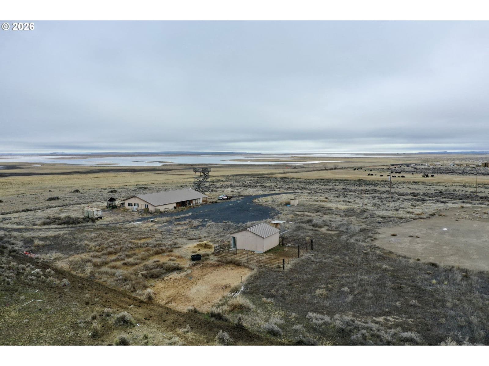 The Duck Club Ranch encompasses ±1,987.47 acres in Eastern Oregon, offering a rare combination of productive ranch ground and unique recreational appeal. The ranch includes approximately 1,200+ acres of water rights from the Silvies River (priority dates 1900–1914), cross-fenced pastures with irrigation water in favorable water years. With reliable seasonal water sources and functional pasture management, the property has historically supported 150–175 cow/calf pairs. The ranch is improved with stock water wells and functional working corrals equipped with a sorting pen, crowding alley, squeeze chute, and loading chute.In addition to its agricultural utility, the ranch offers remarkable recreational attributes, including substantial Malheur Lake frontage, and direct adjacency to the Malheur National Wildlife Refuge—creating waterfowl habitat and big game opportunities in one of Oregon’s most renowned wildlife corridors.Privately set back and overlooking the scenic backdrop of the ranch, the refuge, and the distant Steens Mountain Wilderness, the residence includes approximately 2,576± square feet and has been partially renovated, offering the opportunity to complete and customize into your own private retreat. Improvements also include a GP shed/garage and bird tower.Located just outside Burns, Oregon, this versatile holding presents the opportunity to operate as a productive cattle ranch, reestablish a premier hunting property, or enjoy as a private retreat within one of Oregon’s most iconic and scenic landscapes. Information package available upon request.