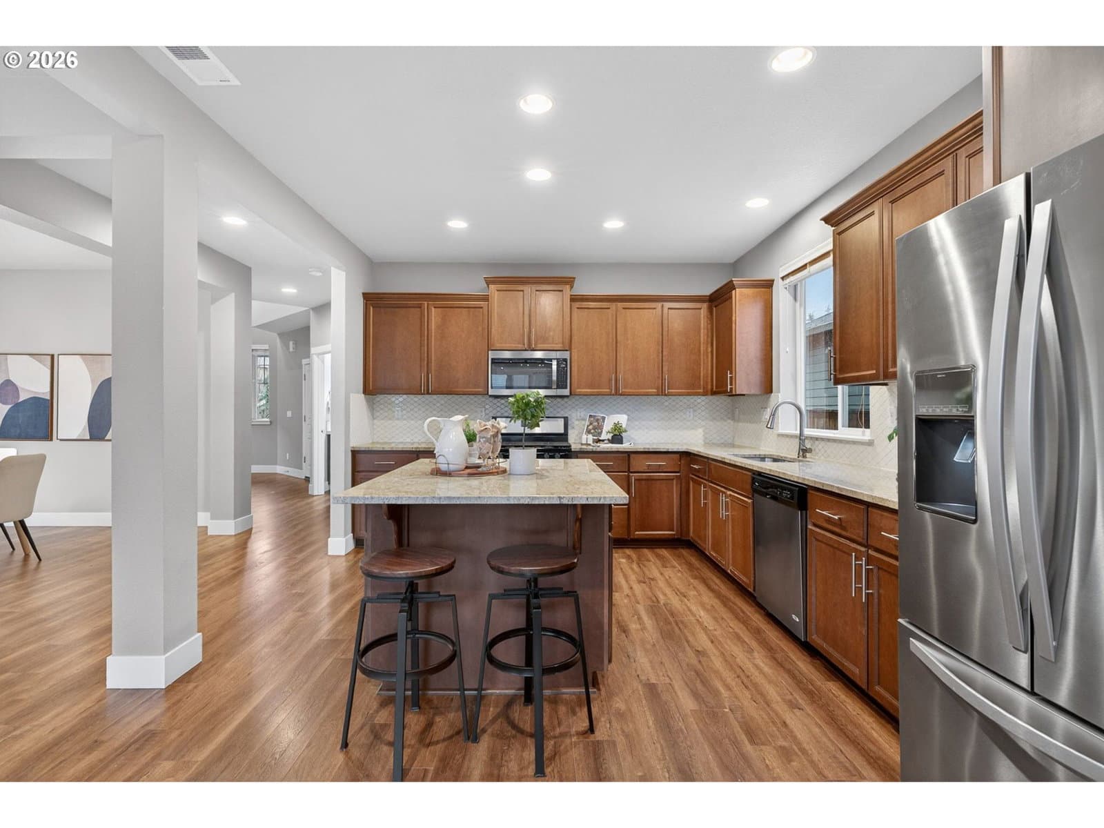 OPEN SAT 3/28 2-4PM! This stunning 2016-built home has it all: floorplan + features + location! Desirable open floorplan with 4 bedrooms plus a bonus loft plus a den with 2.5 baths and 2530 sf. It's the perfect size - not too big, not too small - and it has all the right spaces. You'll love the open kitchen with island and gas appliances, plus pantry. Features include slab granite, stainless steel appliances, laminate floors, wrought iron open railing, bay window, gas fireplace w/built-ins, a skylight and much more. High efficiency 95% furnace and A/C. Move-in ready, the refrigerator and the washer and dryer are included. You'll love the covered patio in the back and the lovely, level yard. The backyard is perfect for relaxing or entertaining and is ideal if you like to garden. Attached 2 car garage has plenty of storage. Prime location, close to high-tech, shopping, and amenities. [Home Energy Score = 6. HES Report at https://rpt.greenbuildingregistry.com/hes/OR10245108]