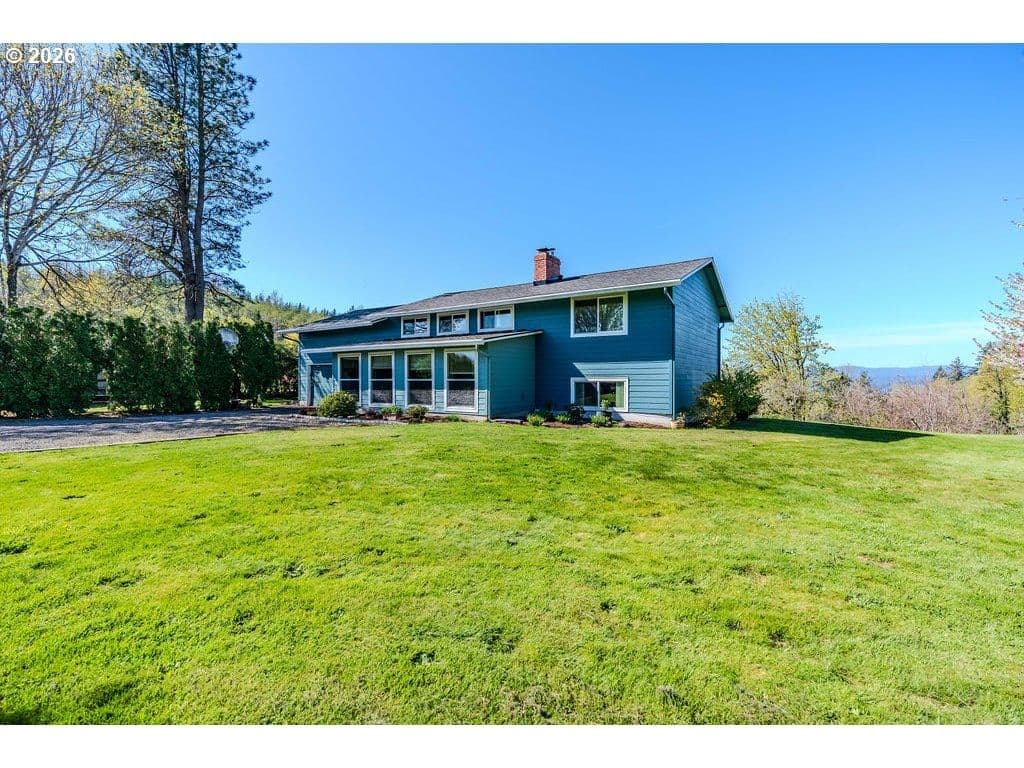 Welcome home to 32728 NE Chamberlain Rd in beautiful Springdale Oregon, at the entrance to the beautiful Columbia River Gorge. This 2.8 acres of ground is likened to the Garden of Eden as it is landscaped and manicured. A multitude of various types of flowers grace and trim the landscape while manicured fruit trees produce a variety of fruits. The garden space includes three kinds of grapes, 10 blueberry bushes, a row of thornless blackberries, and a row of raspberries. The home itself features 5 bedrooms, 2 bathrooms with 2300+ square feet of living space. Recently remodeled kitchen in 2021 with alder cabinets and silestone countertops, new roof and siding in 2022, and interior paint and carpet in 2025-2026. Both updated bathrooms feature granite countertops. There are plenty of built-in bookshelves, two hall closets, and an 8'x10' pantry off the attached double garage for all your extras. Watch the birds and wildlife while you sit on the back deck looking at the peek-a-boo view of the Columbia River. And when you need to go west to town or to points east, you are 5-10 minutes away from access to I-84. Gresham and Troutdale are a mere 15 minutes away, and PDX is of easy access too. If you enjoy all the amenities of country living, call your agent today and book an appointment. One seller is an Oregon Real Estate licensee.