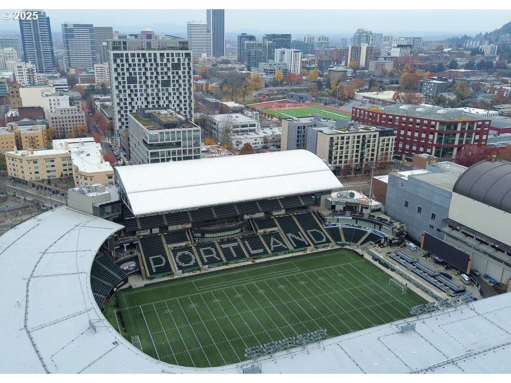 Experience elevated urban living in this exceptional 16th-floor penthouse at The Civic, where a rare 42-foot private balcony offers sweeping views of Portland’s skyline and Providence Park. From this vantage point, enjoy front-row access to Portland Timbers and Thorns matches, concerts, and city lights. Recently remodeled, the residence features a chef-inspired kitchen with high-end appliances, quartz countertops, and custom cabinetry. The open-concept great room is enhanced by floor-to-ceiling windows, premium flooring, and an upgraded wet bar—perfect for entertaining. The primary suite is a luxurious retreat with a spa-like en-suite bath, soaking tub, walk-in shower, and a spacious walk-in closet. A versatile second bedroom provides space for guests, a home office, or additional living. With soaring 12-foot ceilings and an oversized storage area, this penthouse combines comfort and sophistication. The Civic is a LEED Gold-certified building offering 24-hour concierge service, secured entry, and a pet-friendly environment. Two deeded parking spaces are included. Located in the heart of Goose Hollow, this residence provides easy access to NW 23rd Avenue, the Pearl District, MAX light rail, and Portland’s finest restaurants, cafés, and shops. This is a rare opportunity to own a premier penthouse with unmatched views, luxury finishes, and unbeatable urban access.Bike Score: 91. Walk Score: 98.
