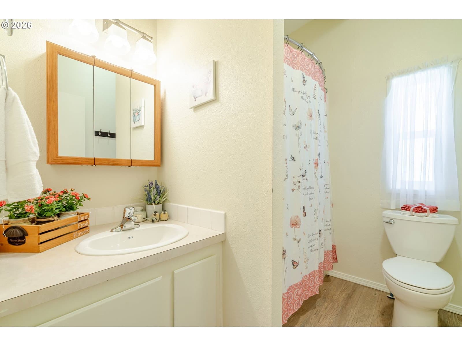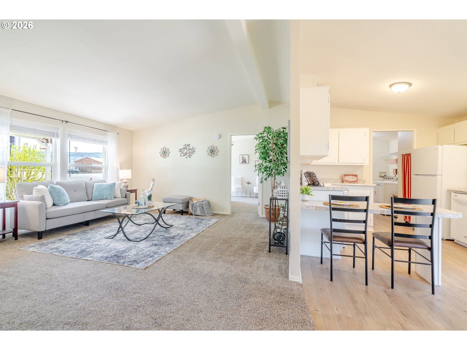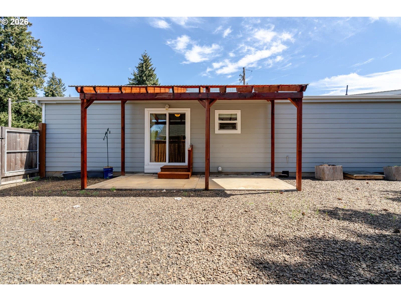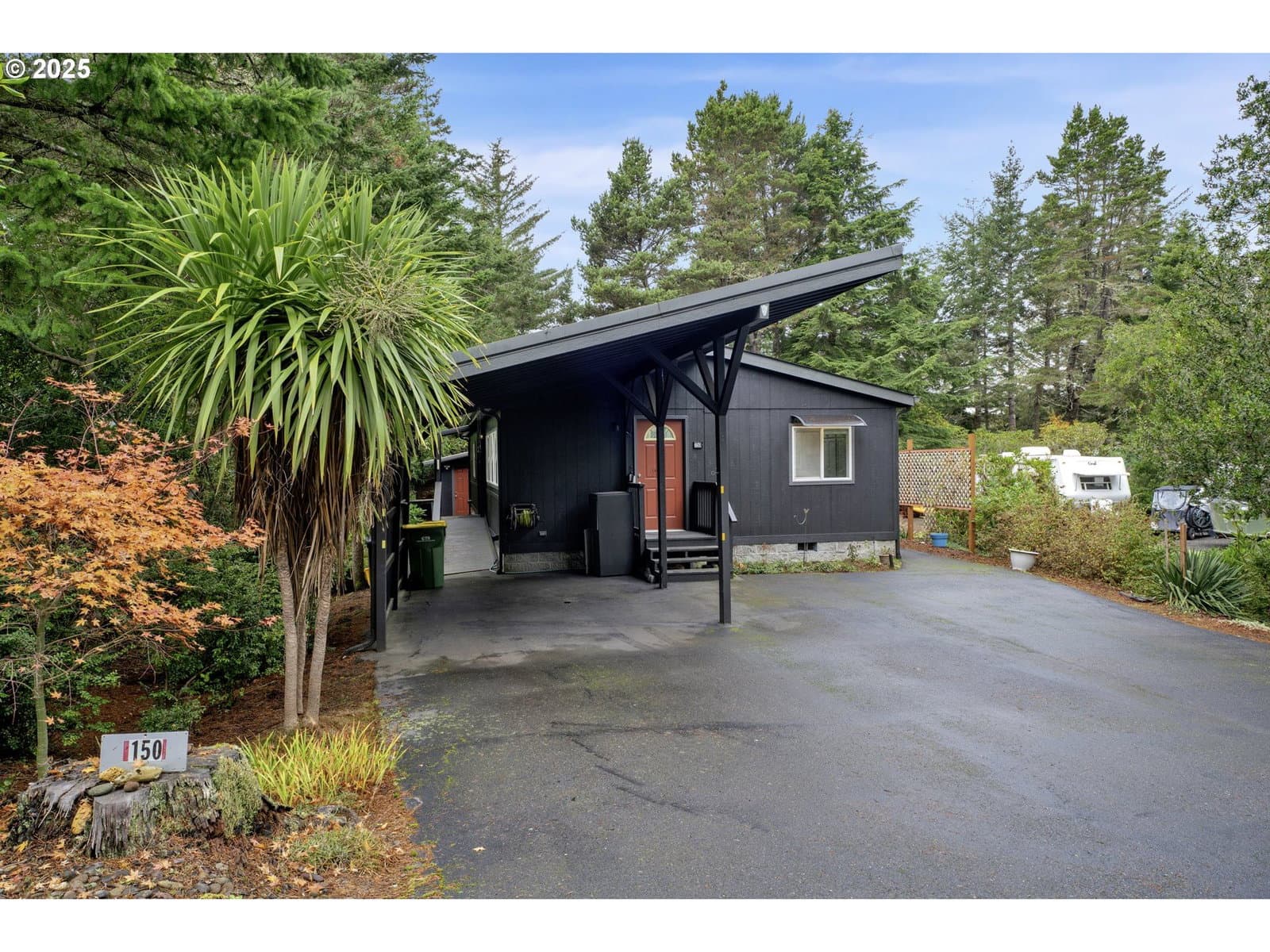 Super cute light and bright beautifully maintained single level manufactured home on the outskirts of Sweet Home. Great floor plan with a central living space, dining room & kitchen. Primary suite on one side, and two bedrooms on the other. 3 covered spaces outside and a great little workshop/shed for storage and tinkering. Beautiful, low maintenance stream bed front yard with complete drip system. 2 separate areas can be used to park RV's or other toys. Easy walking distance to a local restaurant, too!