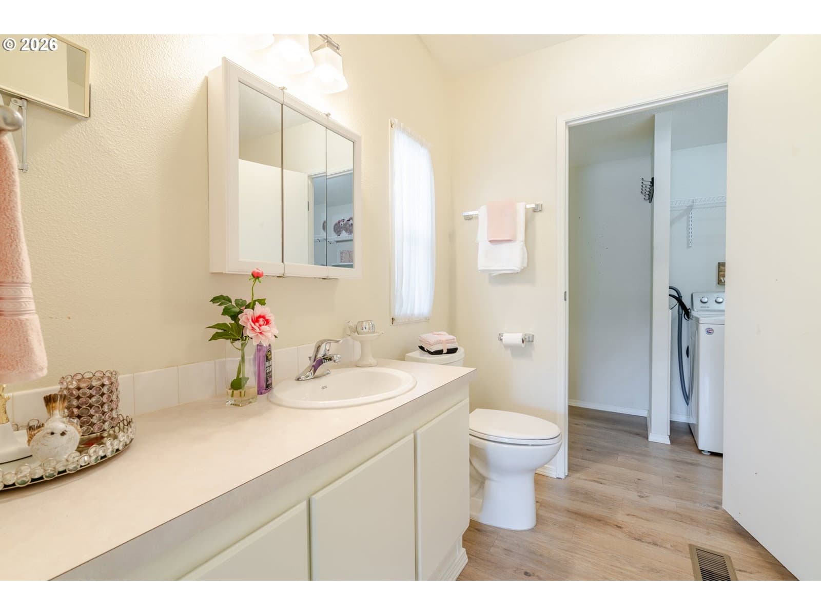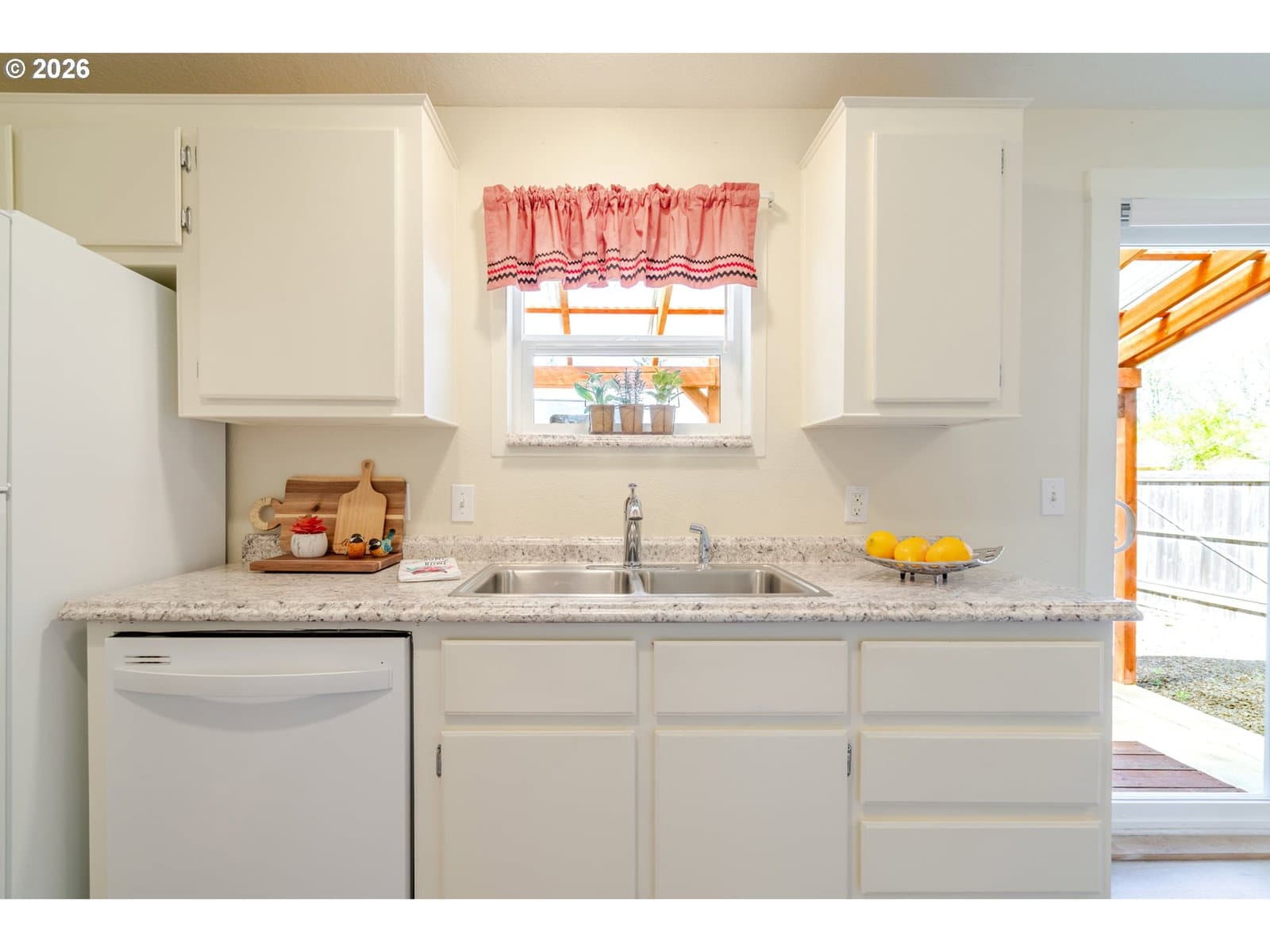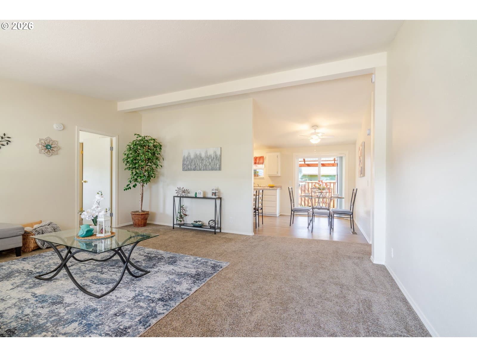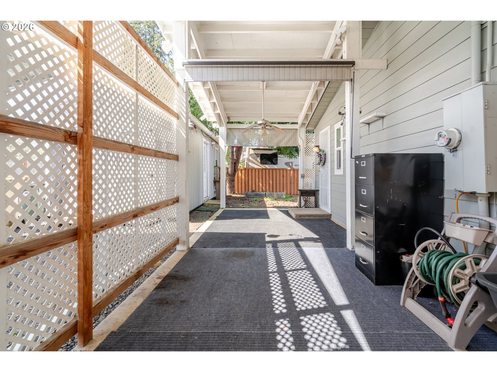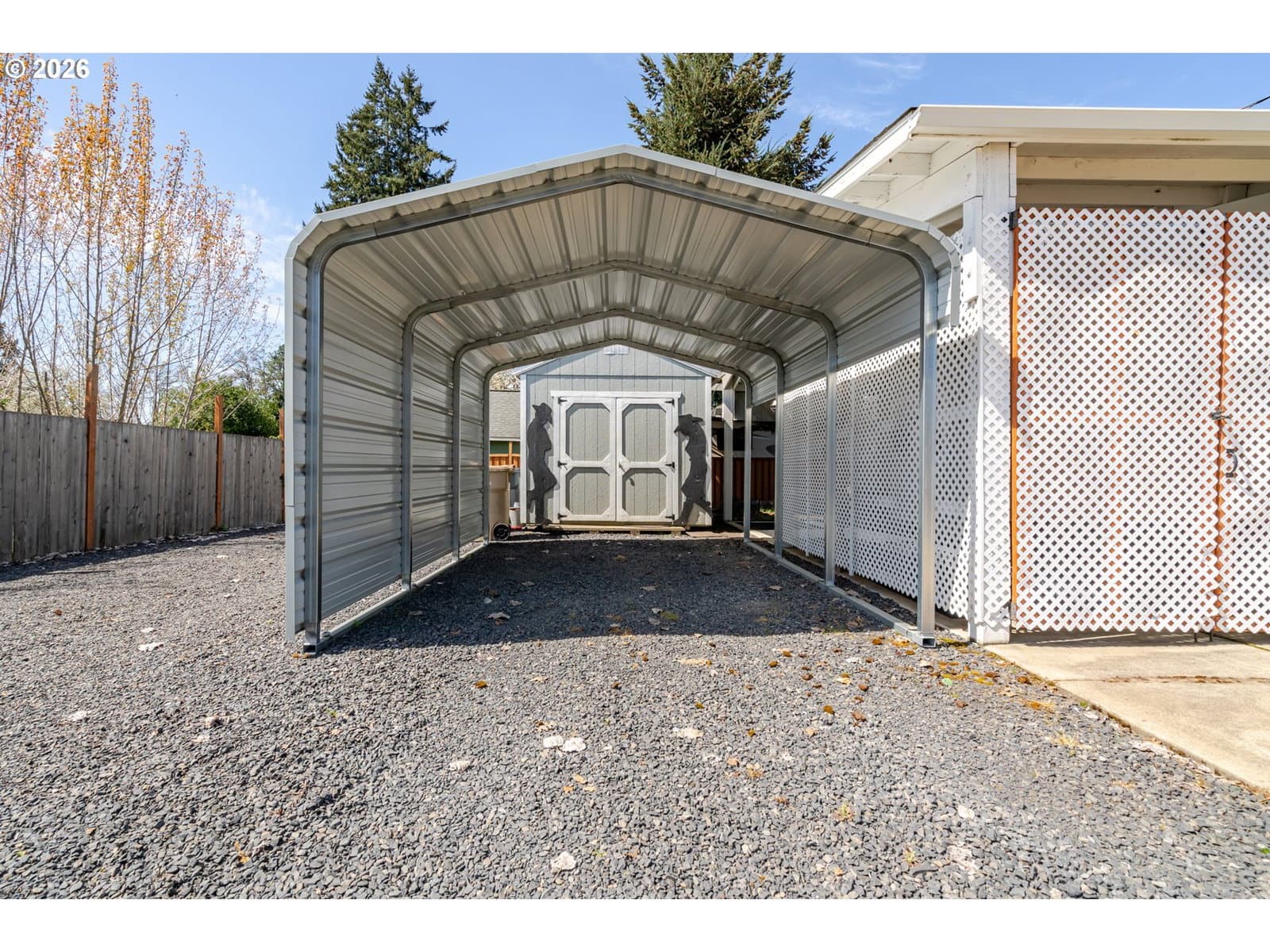 Super cute light and bright beautifully maintained single level manufactured home on the outskirts of Sweet Home. Great floor plan with a central living space, dining room & kitchen. Primary suite on one side, and two bedrooms on the other. 3 covered spaces outside and a great little workshop/shed for storage and tinkering. Beautiful, low maintenance stream bed front yard with complete drip system. 2 separate areas can be used to park RV's or other toys. Easy walking distance to a local restaurant, too!