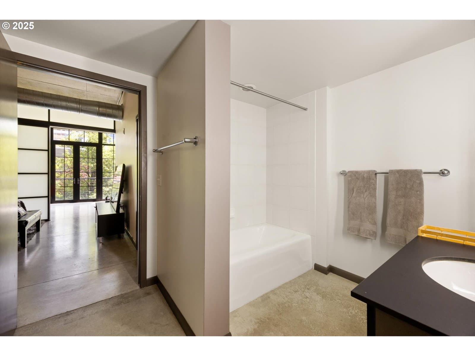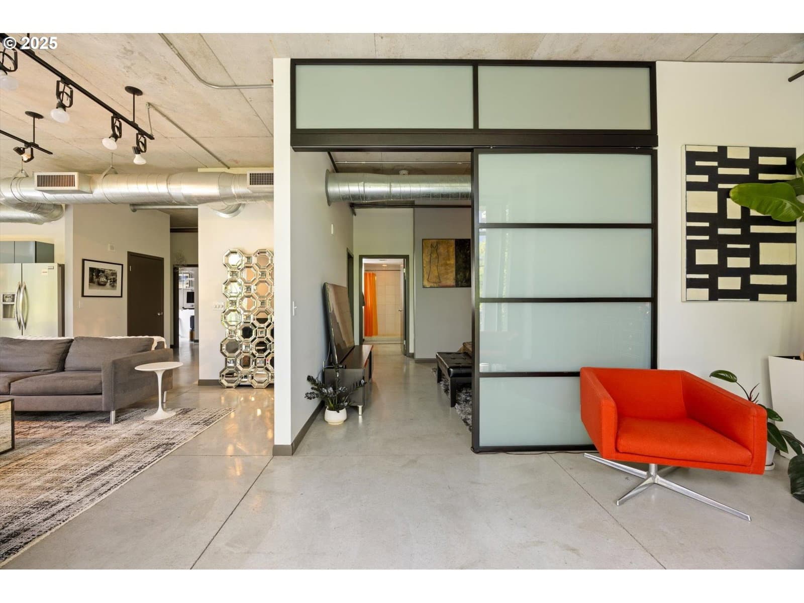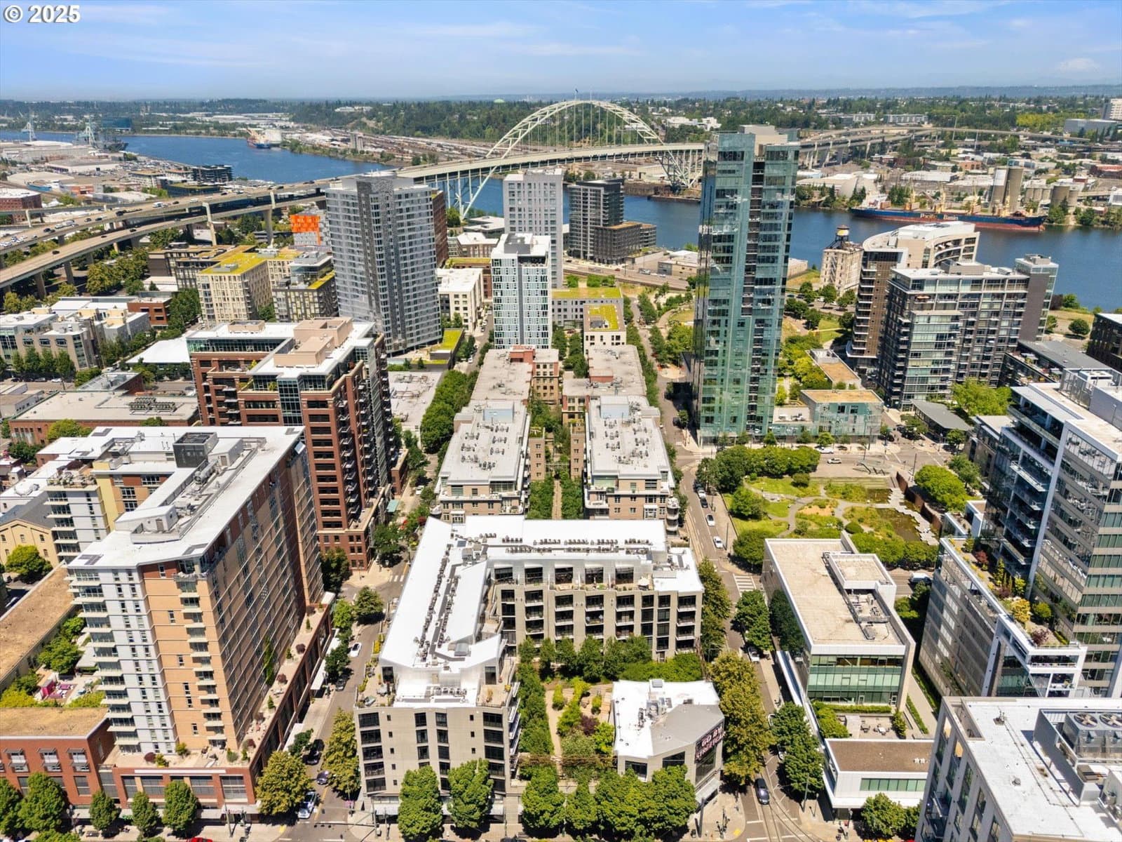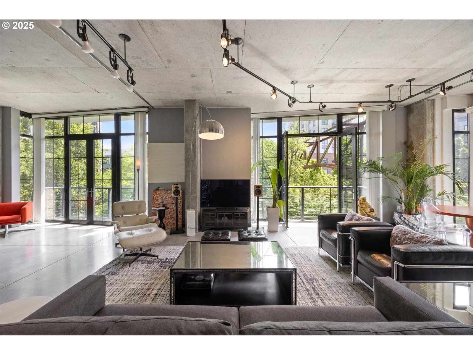 Welcome to Go By Streetcar, a sought-after building in Portland’s vibrant Pearl District. This stylish 2-bedroom, 2-bath condo blends modern industrial design with urban comfort. Polished concrete floors, exposed elements, and soaring ceilings define the interior aesthetic, while expansive 11-foot balcony doors open up to a lush view of treetops and the city skyline—offering an indoor-outdoor flow that’s rare in downtown living. The spacious layout includes a dedicated office, perfect for remote work or creative pursuits. Whether you’re entertaining guests or enjoying a quiet evening at home, the open-concept living space and sleek modern finishes provide the perfect backdrop. Live steps from galleries, cafes, boutiques, and the streetcar line—right outside your door. Experience the best of Portland living in this contemporary Pearl District gem.