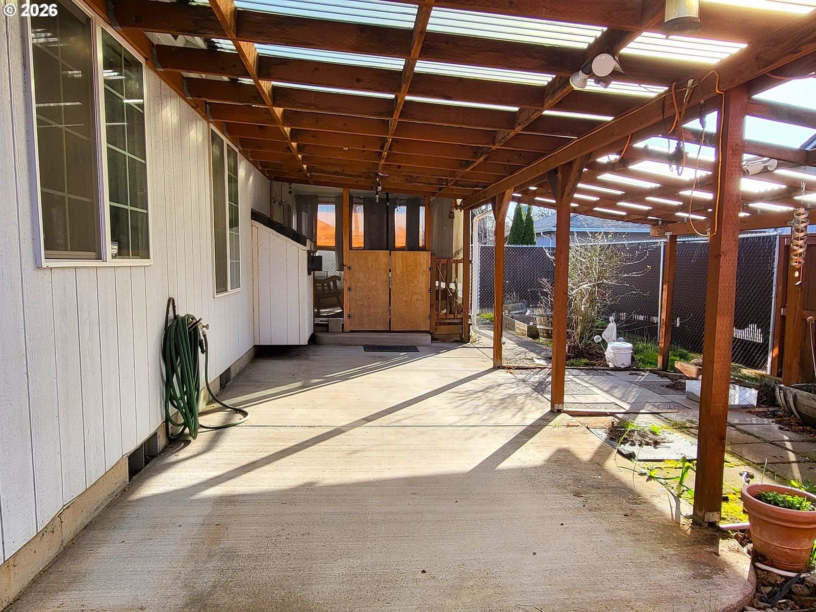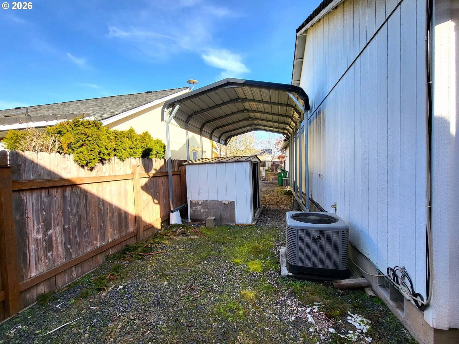 Charming Santa Clara Home — Quiet Neighborhood, Endless Possibilities. Welcome to this delightful single-family home in a peaceful Santa Clara neighborhood — light-filled, open floor plan with great flow and endless potential. The large living room features vaulted ceilings that create a dramatic, airy feel perfect for relaxing or entertaining. Double doors open into the primary suite with a private ensuite bath for added comfort and privacy. Practical conveniences include inside laundry with washer and dryer and cabinets in the garage for extra storage. Step outside to a screened-in deck with a covered patio — an ideal indoor/outdoor entertaining space year-round. The property also includes a large Tuff Shed workshop in the backyard for hobbies, storage, or a multipurpose studio. Additional Highlights: RV parking with covered spot located behind a secure gate: Quiet, well-kept neighborhood. Flexible open layout ready for your personal updates and finishing touches. This home blends everyday functionality with outdoor amenities and a versatile footprint. Perfect for buyers looking for space, storage, and entertaining options in Santa Clara.