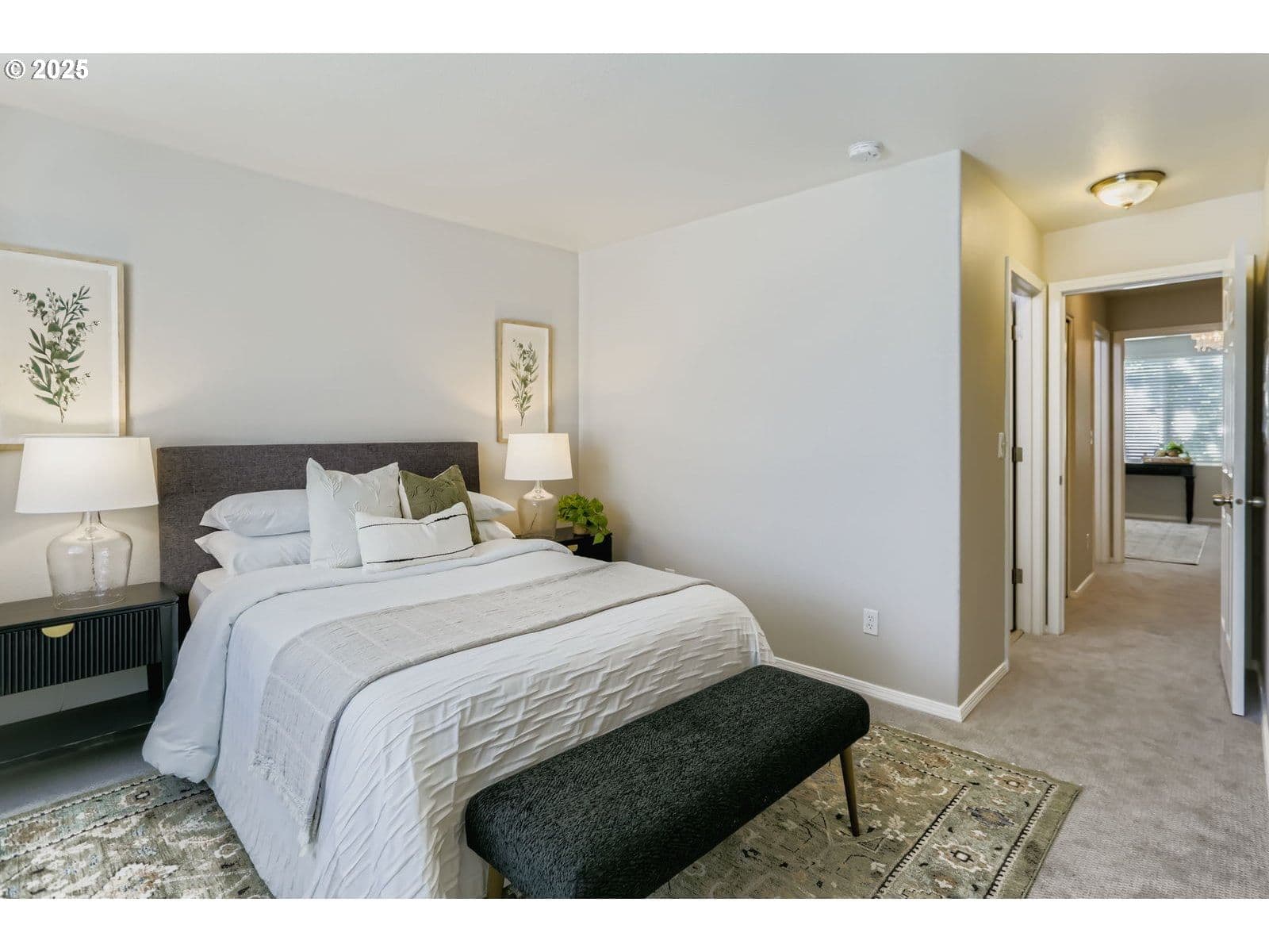 Welcome home! This light-filled 2-bedroom, 2.5-bath townhome is the perfect fit for first-time buyers looking for comfort, convenience, and great value. Located just minutes from Murrayhill and Progress Ridge, you’ll enjoy easy access to shops, restaurants, movies, and more—plus quick connections to Hwy 217, Murray Blvd, and public transit right outside your door.Step inside to find recently installed carpet, fresh paint, updated light fixtures, quartz countertops, central A/C and a brand-new furnace already in place—no big projects needed here! The open concept kitchen and dining space are ideal for hosting friends, while the cozy living room features a gas fireplace and sliding door to a private, tree-shaded balcony overlooking a peaceful green space. Upstairs, you’ll find two spacious bedrooms, each with access to a full bath, and convenient in-unit laundry. The oversized tandem garage offers tons of extra storage, plus a covered patio area—perfect for a home gym, workshop, or simply keeping your gear organized. With all appliances included and top-rated schools like Nancy Ryles Elementary and Mountainside High nearby, this townhome checks all the boxes for an easy, low-maintenance lifestyle in a great neighborhood. Priced for a quick sale!