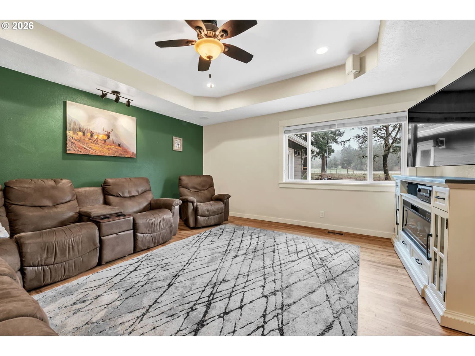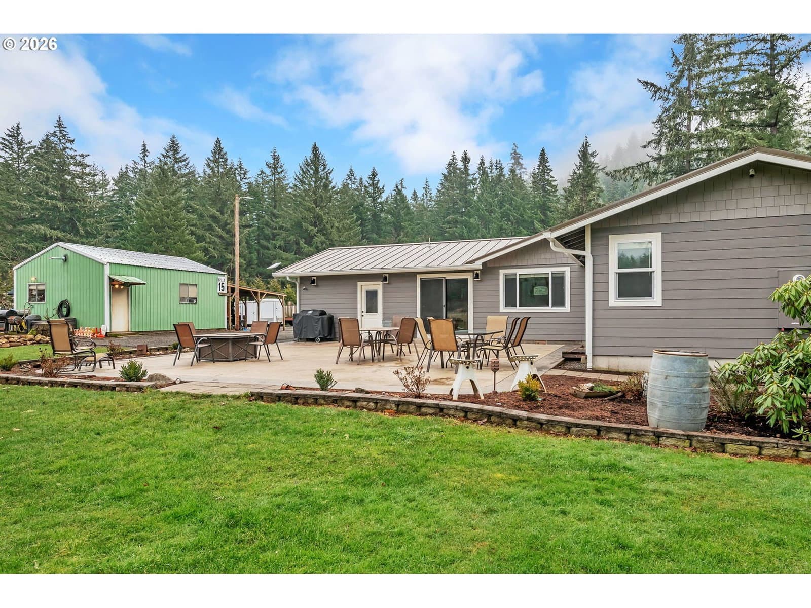Beautifully remodeled 1,435 sq ft home situated on 1.87 acres of flat, usable land with views. Featuring 3 Bedrooms, 2 Bathrooms a newly added primary suite with vaulted ceilings. The primary bathroom includes radiant floor heating, walk in closet, dual headed shower and deep soaking tub. Outside, the park-like setting is designed for low maintenance and usability, complete with in-ground sprinklers, a detached 20X24 workshop, covered 20'X41' RV/trailer storage with hookups, and an electric gated entry for added privacy and convenience. Large Gravel parking. This property offers a rare combination of privacy, functionality, and move-in-ready condition. Home is outside of the flood zone and does not require flood insurance. Large shop plans may be provided to buyer upon request. Ask your agent for the flyer!