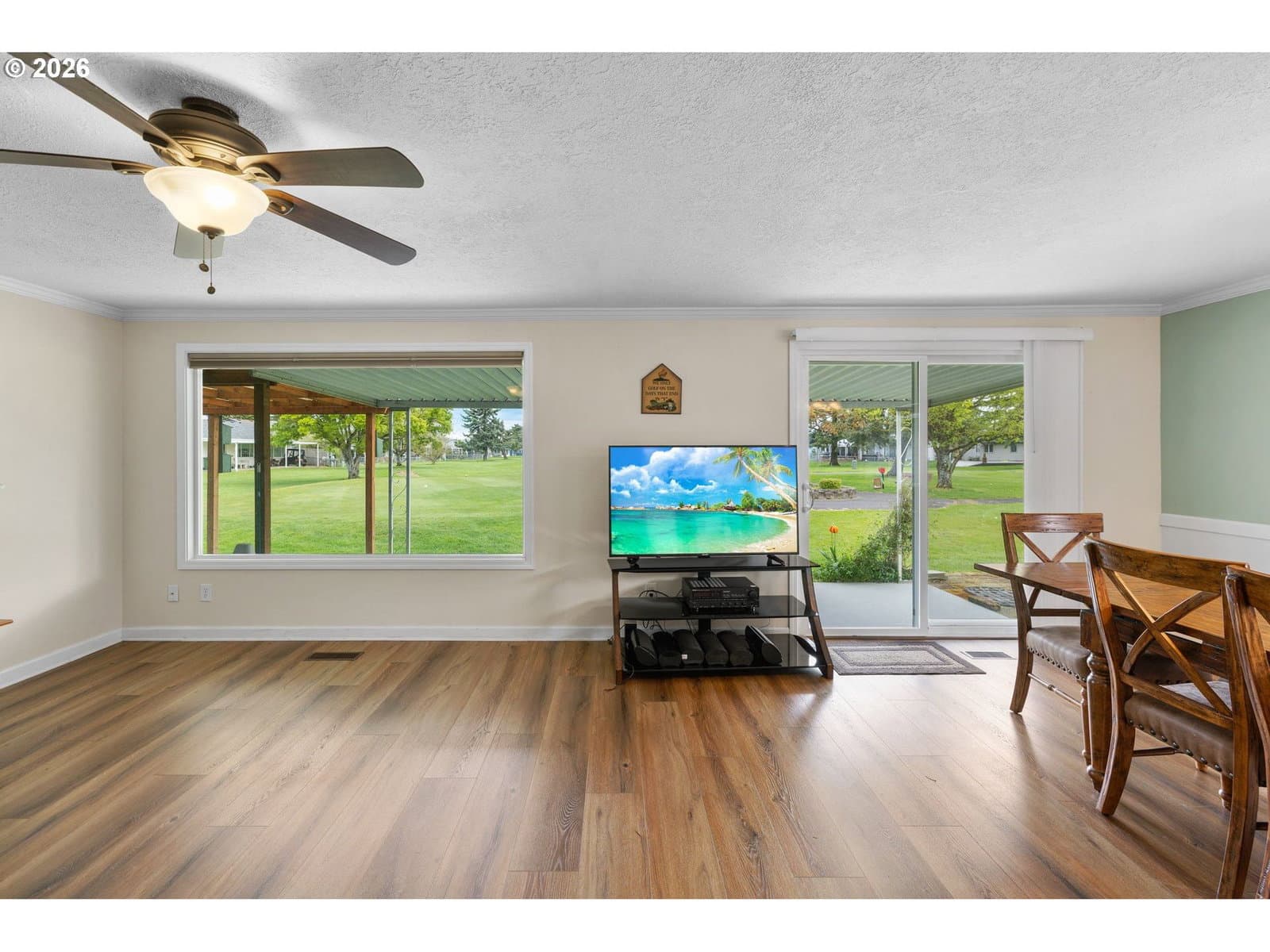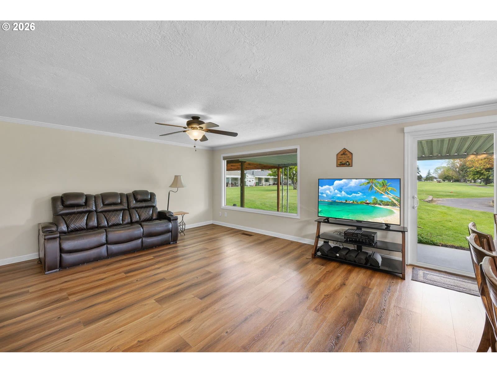 Located at the top of the 15th tee, this beautifully maintained home offers sweeping golf course views across two fairways—perfect for relaxed, everyday living in a vibrant 55+ community.Enjoy your morning coffee on the covered back patio while watching golfers pass by. Inside, the kitchen features granite countertops, and the living room’s large picture window perfectly frames the course. Move-in ready with a low-maintenance layout and a spacious 2-car garage with room for a golf cart.Community amenities include a clubhouse, indoor pool, fitness center, library, card room, and social events. Conveniently located close to shopping and freeway access. Easy, active living with beautiful views.