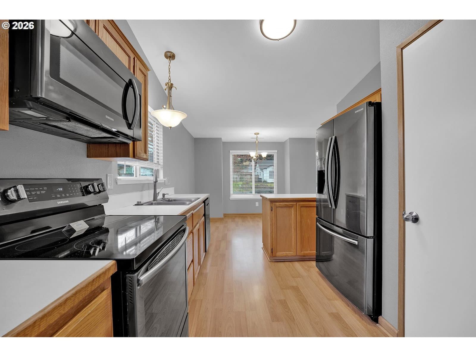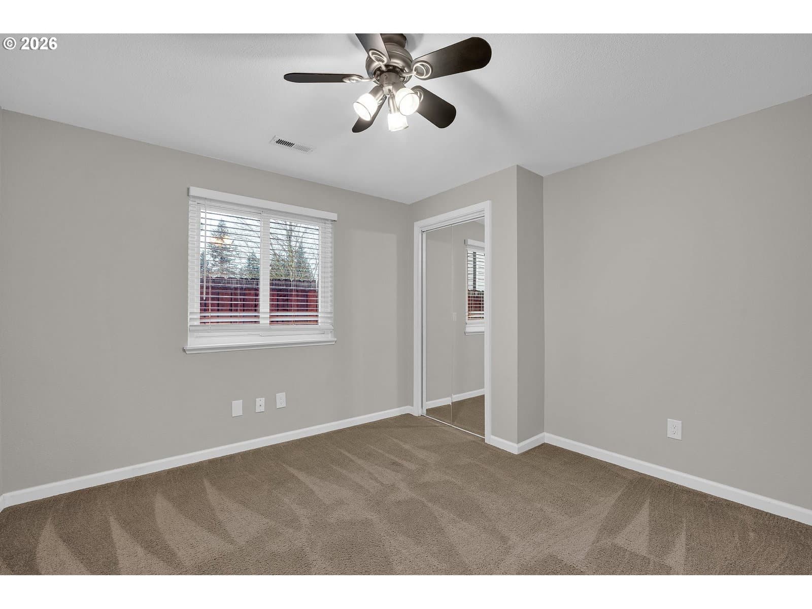 Picture yourself settling into your beautifully maintained single level home filled with natural light, inviting energy, and a layout that simply feels good to live in. Offering 1,362 square feet of comfortable living space, the home feels open, bright, and easy to enjoy from the moment you enter.The kitchen features stainless steel appliances, great cabinet storage, and a window above the sink that brings in natural light. A connected dining area flows naturally from the kitchen, making everyday meals and gatherings easy and comfortable. Laminate flooring runs through the main living areas while plush carpet in the bedrooms adds warmth and comfort. A dedicated laundry room with washer and dryer included adds everyday convenience. A new HVAC system installed in 2019 controlled by a Nest thermostat. The spacious primary bedroom includes its own private bathroom with an updated vanity and fixtures, while two additional bedrooms provide flexibility for guests, a home office, or hobbies.Outside, enjoy a fully fenced backyard with mature trees, a deck for outdoor seating, and a patio area that creates a welcoming space for relaxing or entertaining. The yard offers a great balance of lawn and outdoor living space and includes an irrigation system to help keep the landscaping green and easy to maintain.An attached double car garage provides convenient parking and storage, and the location places you close to shopping, dining, parks, and major commuter routes while still offering a comfortable place to unwind and recharge at the end of the day.