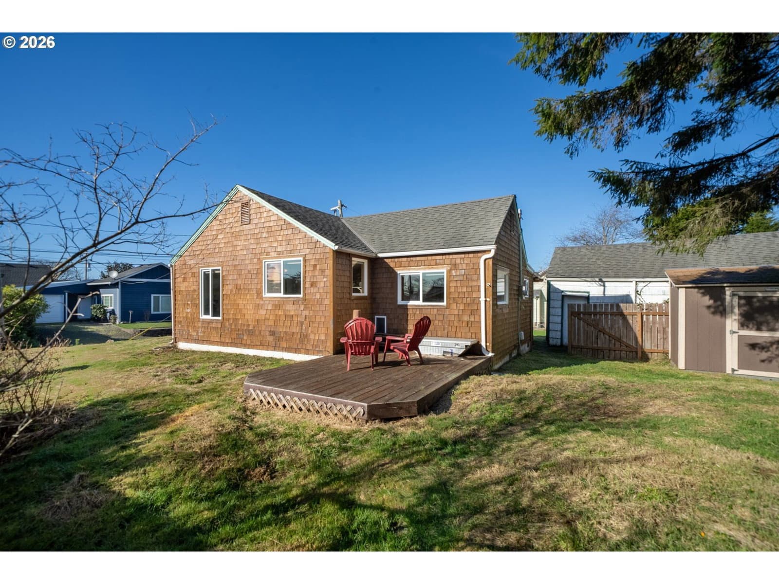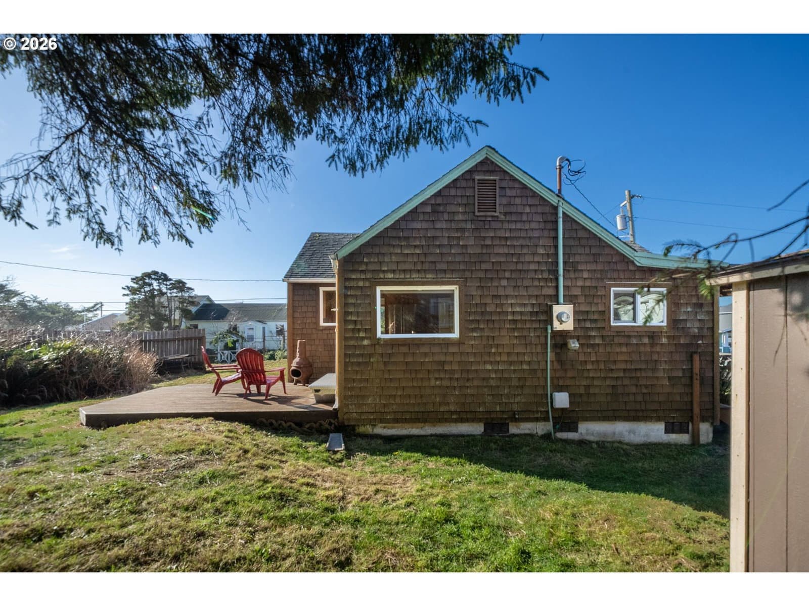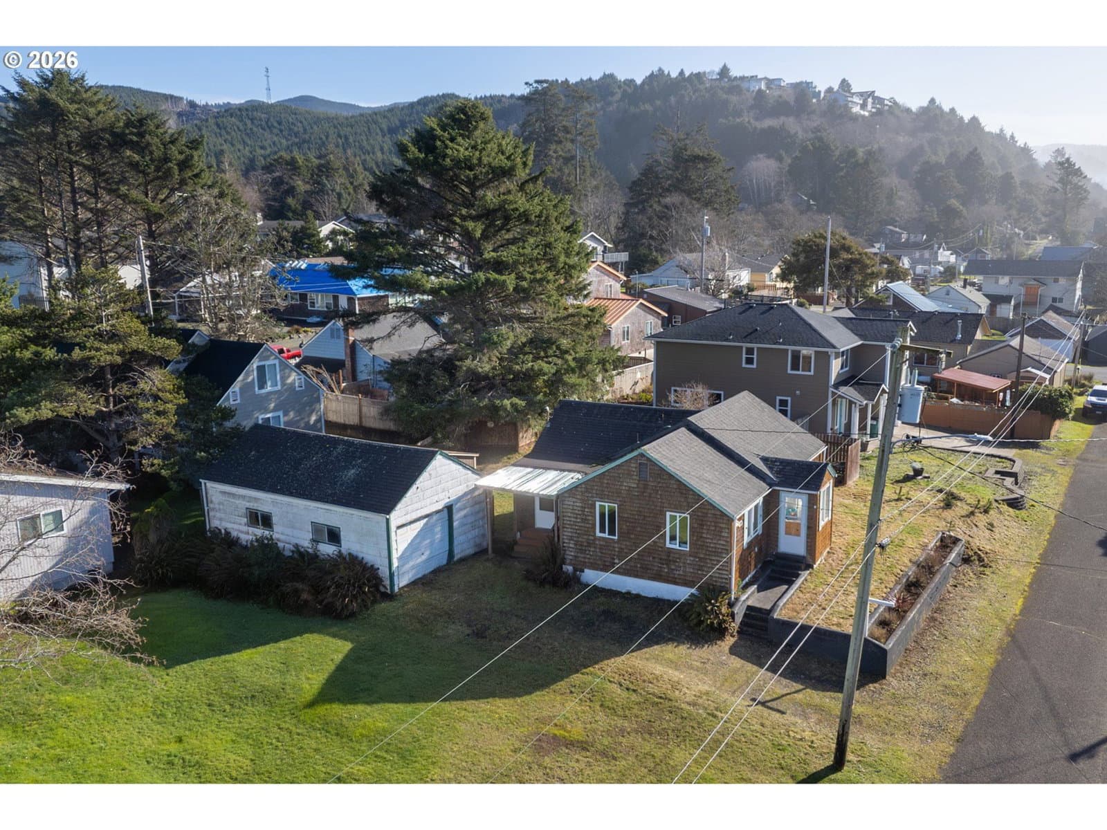 Charming coastal cabin in the heart of Rockaway Beach, located on an elevated lot and outside the FEMA Special Flood Hazard Area, a valuable consideration at the coast. This darling retreat is full of character, featuring classic knotty pine walls and cabinetry that create a warm, nostalgic beach-house feel. Bright, cozy, and full of good energy, it’s the kind of place where memories are made.Set on a generous, sun-filled lot, you’ll enjoy a big sunny yard perfect for relaxing or entertaining, plus a spacious deck for morning coffee or evening gatherings. A Tuff Shed provides excellent extra storage, and the detached garage is ready for a little TLC and your personal touch. Just blocks to the beach and an easy stroll to Rockaway’s best restaurants, shops, Pelican Brewery, and ice cream! This sweet cabin captures everything people love about coastal living.