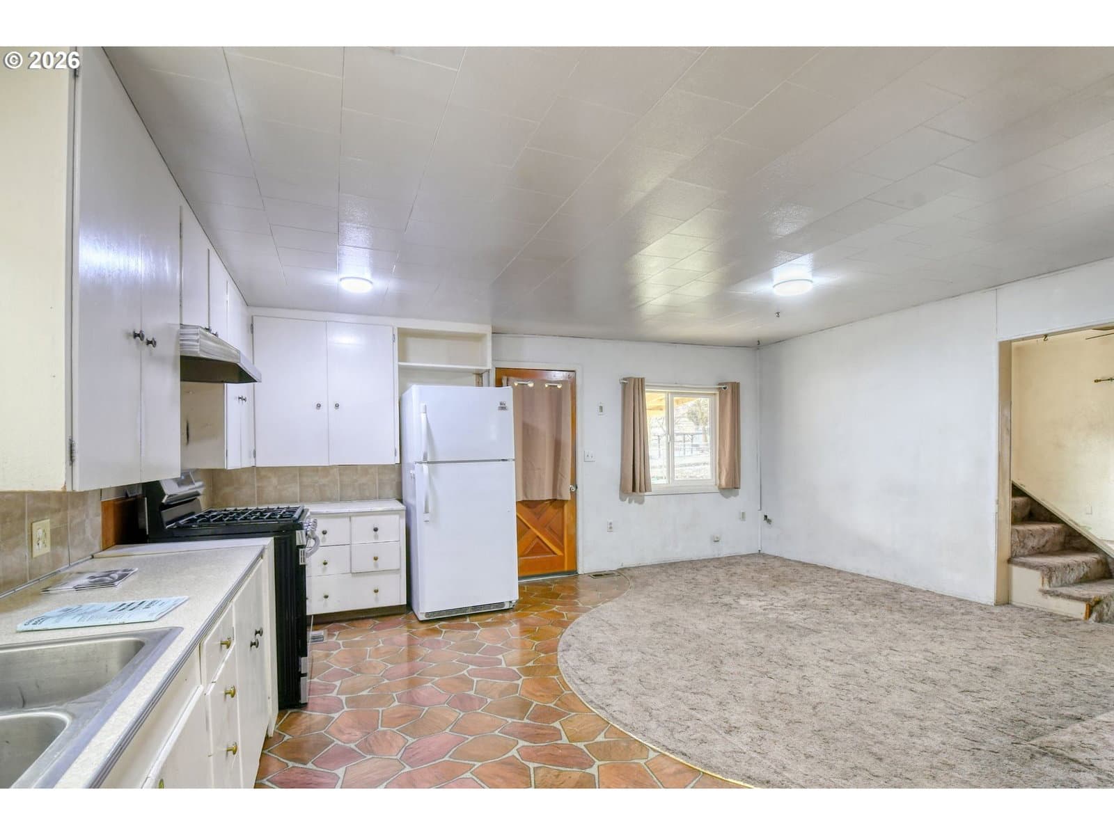 Charming 3-Bedroom Home on a Corner Lot with Large Shop GarageWelcome to this inviting 3-bedroom, 1-bath home offering 1,364 sf(m/l). Situated on a convenient corner lot, this two-story home features a main-level primary bedroom and two additional bedrooms upstairs—perfect for privacy, guests, or a home office setup.Step inside to an open-concept kitchen that flows easily into the living area, creating a warm and welcoming atmosphere ideal for everyday living and entertaining. The home is equipped with forced-air gas heat for efficient year-round comfort.Exterior upgrades include newer Hardi Plank lap siding and a durable metal roof, giving the property long-lasting protection and great curb appeal. The fully fenced yard provides space for pets, gardening, or outdoor relaxation.Car enthusiasts, hobbyists, or those needing extra storage will appreciate the impressive 24' x 30' (m/l) shop/garage with a concrete floor—an excellent bonus rarely found at this price point.With its blend of updates, functional layout, and standout shop space, this property offers exceptional value and versatility. Come see the potential and make it your own!