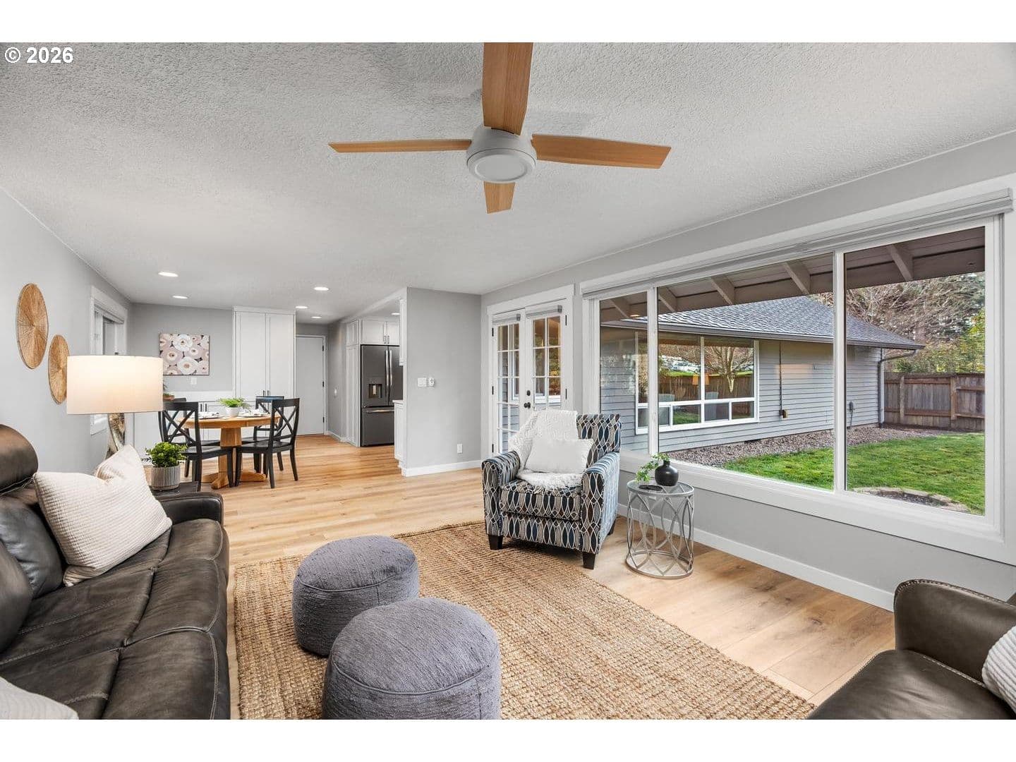 OPEN HOUSE SAT 3/14 & SUN 3/15 1-3 PM! Thoughtfully designed one-level ranch home offering approximately 1,757 square feet with four bedrooms and three full bathrooms in a comfortable, functional layout. The bright kitchen features quartz countertops, under-cabinet lighting, gas cooking, and stainless steel appliances. The dining room with built-in buffet adjoins the kitchen and family room, creating an easy flow for everyday living and entertaining, while a separate formal living room provides additional space for gatherings or quiet relaxation.The primary bedroom suite includes double closets and a private bathroom. Central air conditioning provides year-round comfort. A permitted remodel completed in 2021 offers modern updates, including the main plumbing line under the house, and the 50-year Presidential roof installed in 2015 adds long-term peace of mind.Situated on a 7,841 square foot lot, the large fully fenced backyard offers plenty of space to garden, play, or design your ideal outdoor living area. The property also includes a spacious two-car garage.Conveniently located near Nike Headquarters, transportation, shopping, and excellent schools, the home also enjoys a neighborhood path next door providing easy walk access to the elementary school. Community amenities include a pool, spa/hot tub, recreation room, and common areas. HOA includes insurance and professional management. Taxes are $7,639.14 with annual HOA dues of $714.